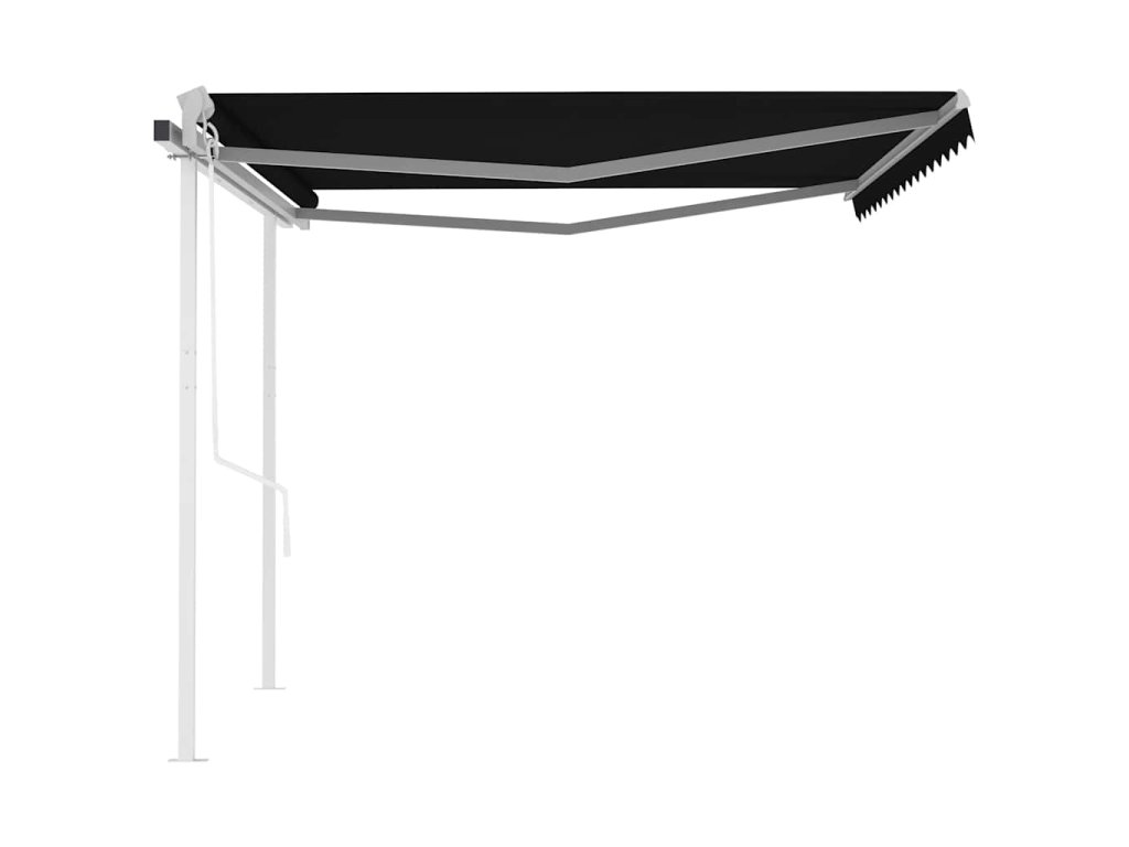 Táto vonkajšia markíza je vyrobená z nehrdzavejúceho práškovaného hliníkového rámu, vďaka čomu je ľahká, ale pevná. Tkanina terasovej markízy je vyrobená z polyesteru s vysokou hustotou s PU povrchovou úpravou, ktorá je odolná voči UV žiareniu a vode. Vďaka silnému železnému stĺpiku je stabilná a pevná. Ďalej je možné podľa vašich preferencií nastaviť uhol a výšku. Automatickú výsuvnú markízu môžete ľahko otvoriť a zasunúť pomocou pribaleného diaľkového ovládača. Navyše, markízu dokážete hladko ovládať aj dlhou kľukou.