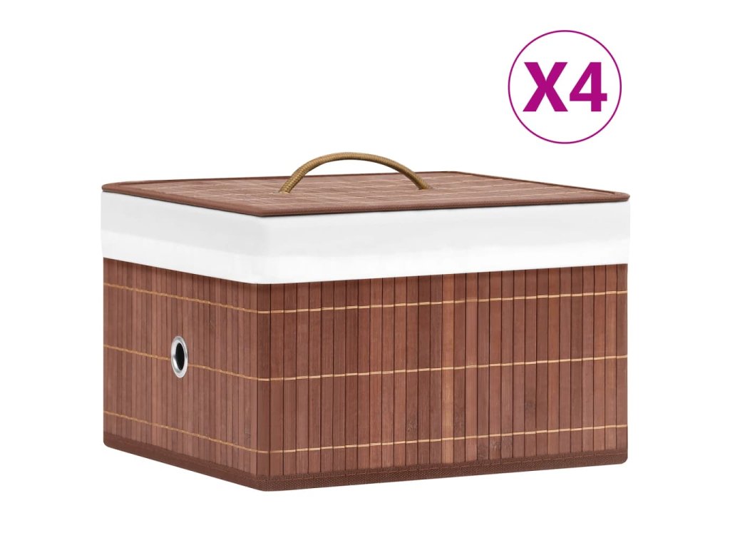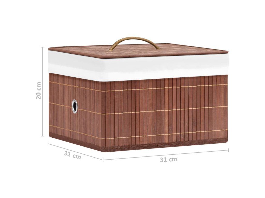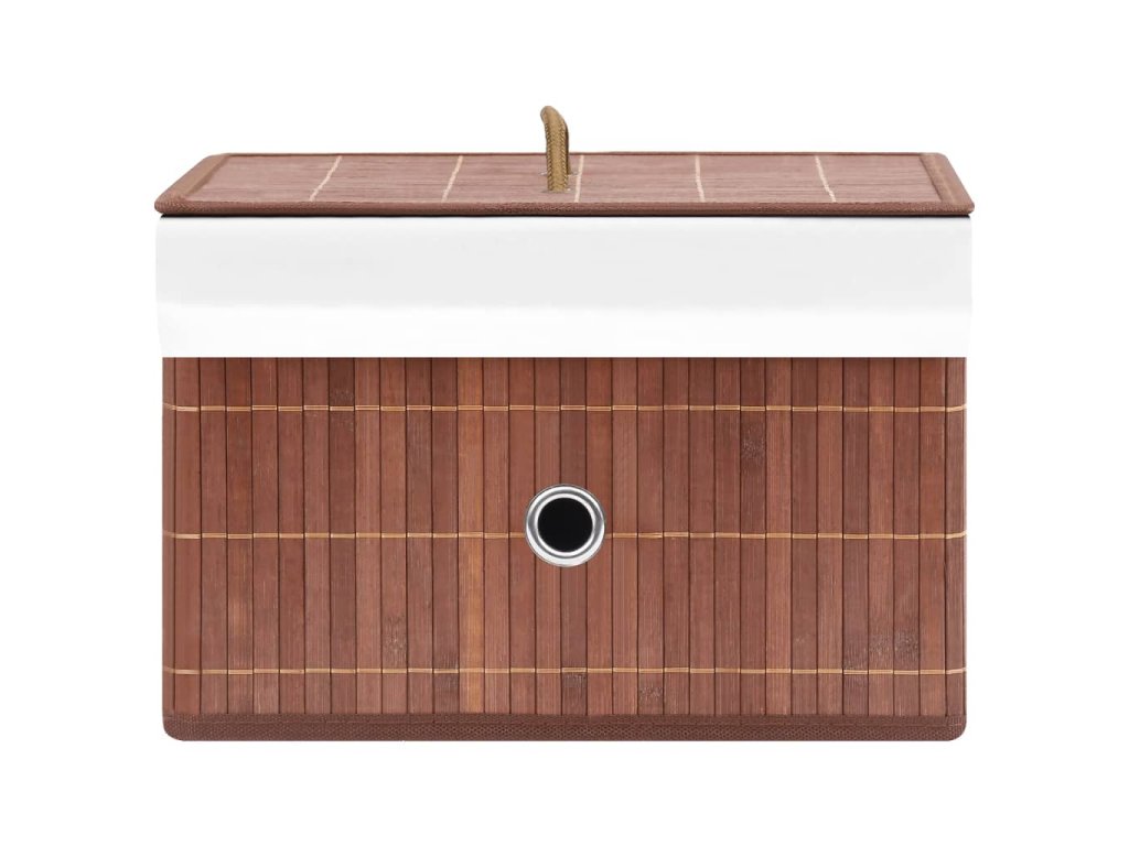 Úložné boxy sú vyrobené z bambusu a tkanej textílie, ktorá je ekologická a je veľmi odolná. Každý box ponúka dostatok miesta na uloženie šatiek, ponožiek, spodnej bielizne atď. Keď sa úložné boxy nepoužívajú, dajú sa poskladať, aby sa tak ušetrilo miesto. Každý úložný box má pohodlné kovové očko, ktoré môžete použiť na vytiahnutie zo skrine a ktoré im dodáva dotyk elegancie.