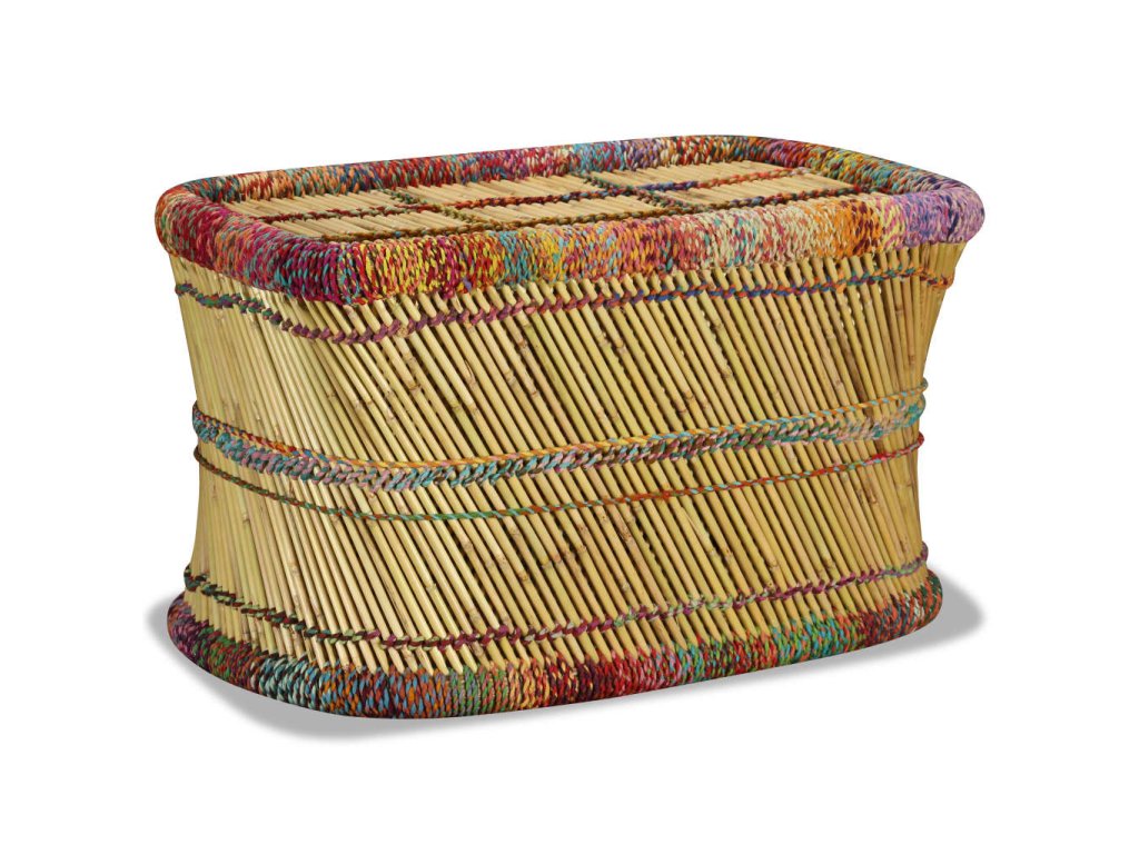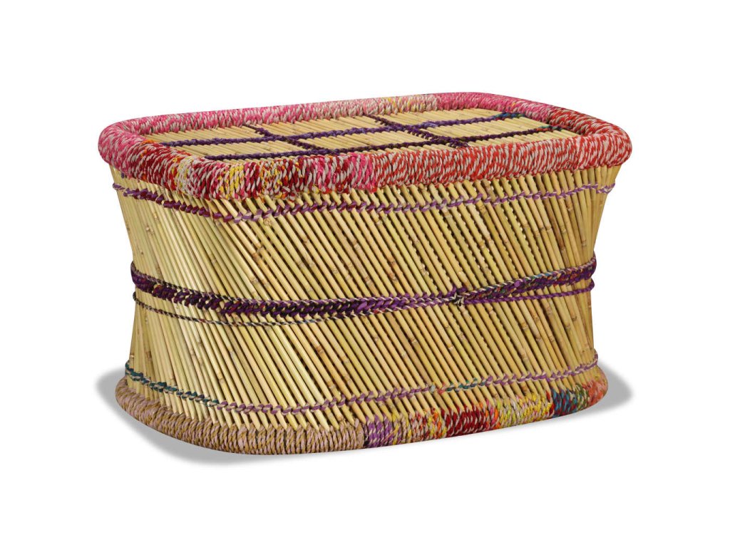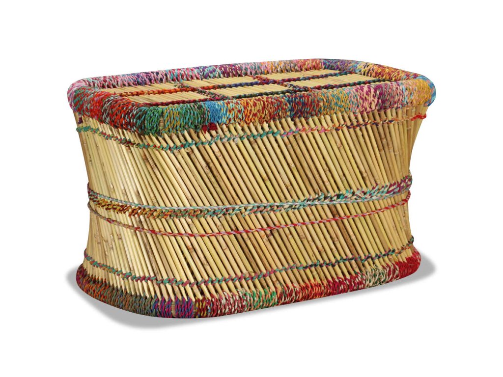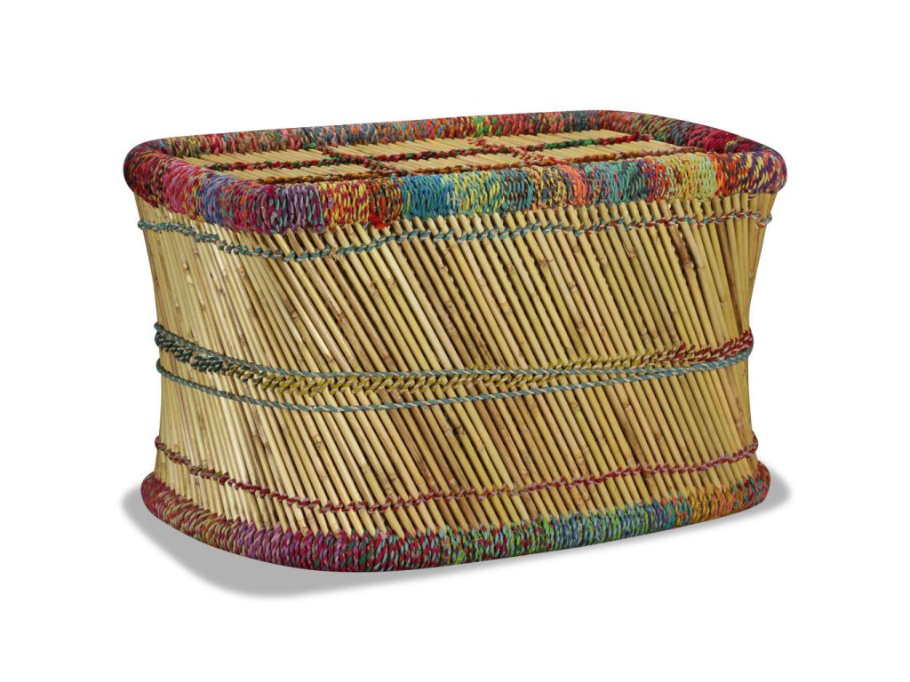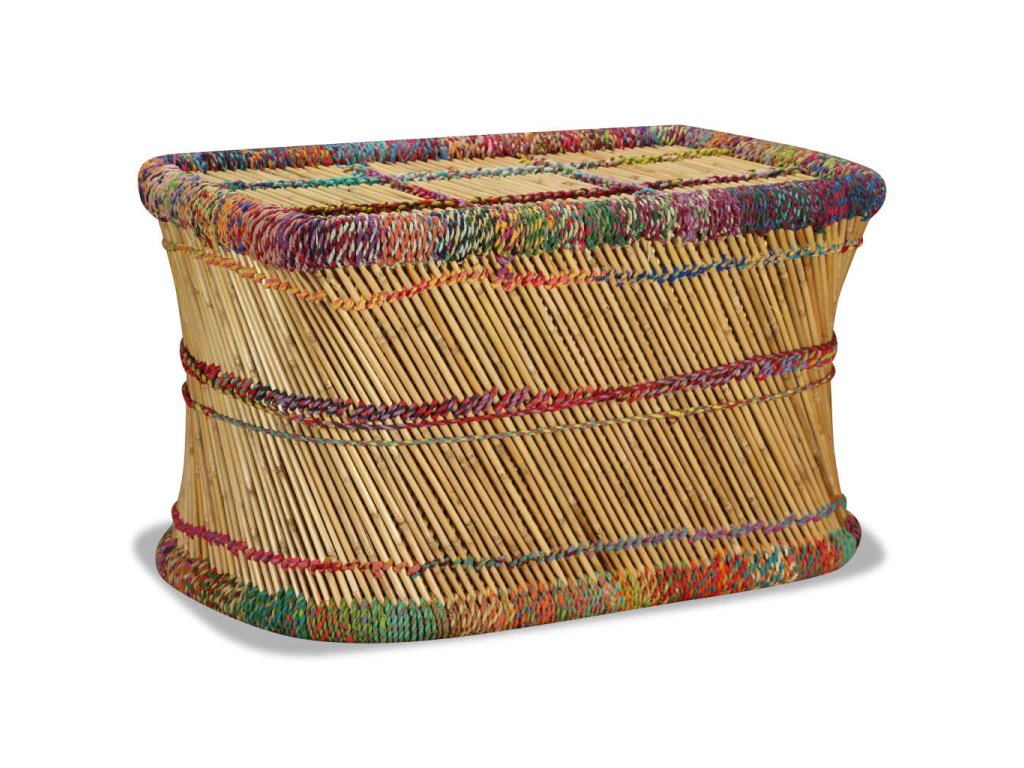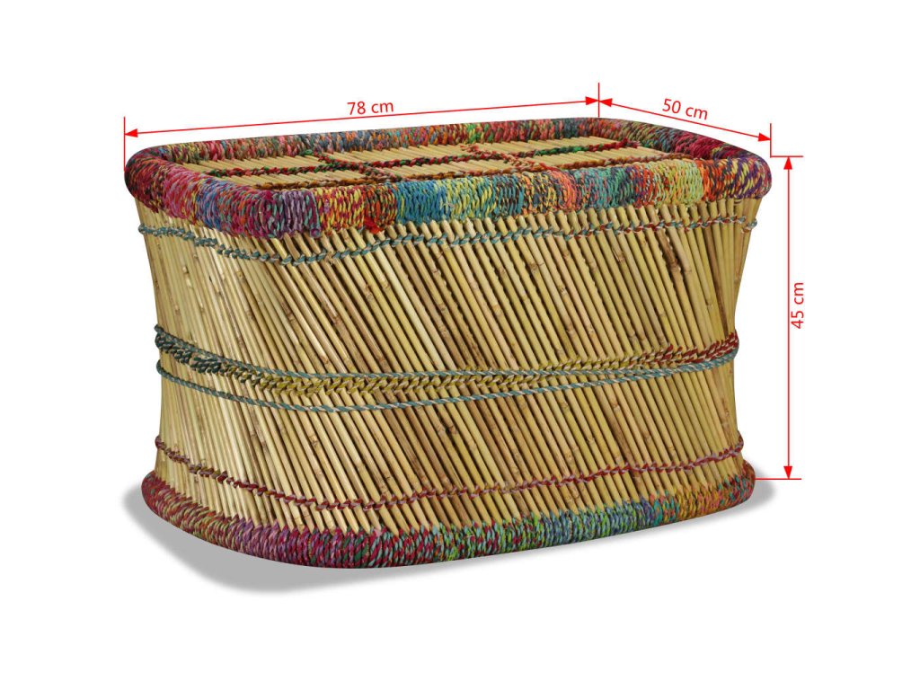 Tento konferenčný stolík je vyrobený z bambusu a vyžaruje z neho prírodný šarm. Má pevnú dosku obklopenú krásnymi tkanými chindi detailmi, na ktorú môžete umiestniť dekoratívne predmety, ako sú koše s ovocím, vázy, nápoje alebo občerstvenie. Pevný železný rám zvyšuje pevnosť a stabilitu stolíka.
