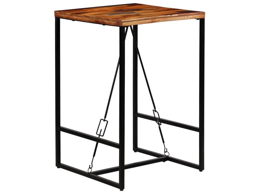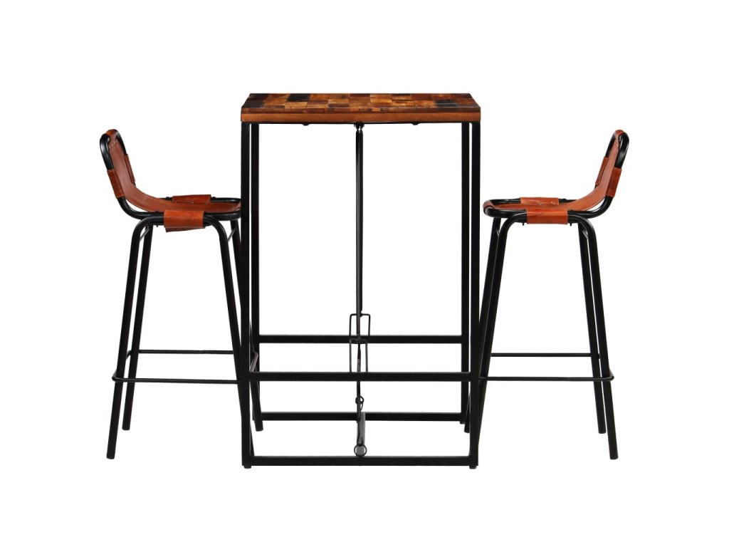 Barový stôl má stabilnú a trvácnu dosku vyrobenú z recyklovaného masívu. Recyklované drevo pochádza z trámov, podláh a nosníkov zo starých zbúraných stavieb a pozostáva z rôznych typov dreva, ako napríklad borovicového, tíkového, bukového, dubového, cédrového, mangového či akáciového dreva. Recyklované drevo sa preto vyznačuje vlastnosťami týchto typov dreva. Recyklované drevo je staré, zvetrané a usušené, a preto sa nezmršťuje ani neohýba. Kontrastujúce farebné odtiene dreva stolu dodávajú neobyvklý vzhľad a vďaka zaujímavej textúre dreva je každý kus nábytku jedinečný a trochu odlišný od ostatných. Sedadlá stoličiek z pravej kozej kože sú mäkké na dotyk a poskytnú vám pohodlie pri sedení. Oceľový rám s práškovou povrchovou úpravou barovej súprave poskytuje potrebnú stabilitu a pevnosť a umocňuje jej industriálny vzhľad. Montáž je jednoduchá. V balení sa nachádza 1 barový stôl a 2 barové stoličky.