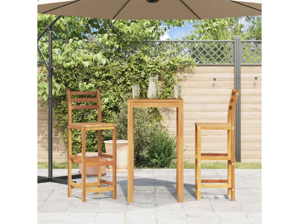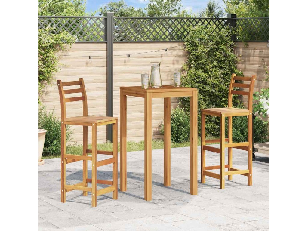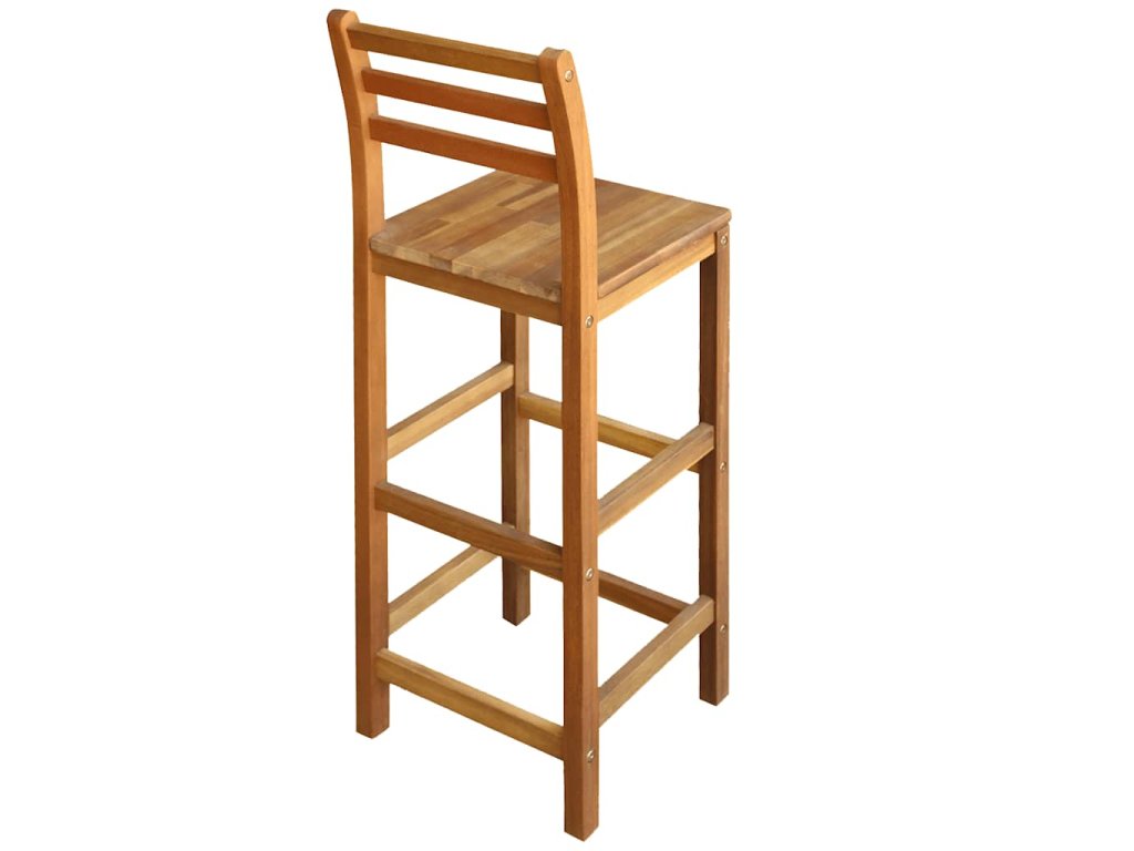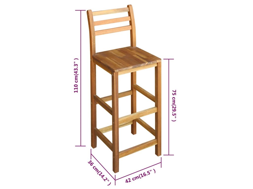 Barové stoličky sú vyrobené z akáciového masívu, vďaka čomu sú pevné, trvácne a vhodné do exteriéru. Operadlá a opierky na nohy poskytujú pohodlie pri sedení. Sada barových stoličiek sa jednoducho montuje.