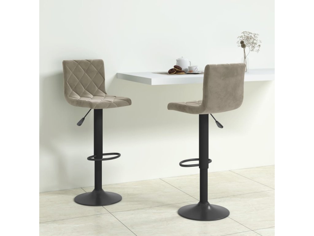 Tieto barové stoličky sú čalúnené zamatom mäkkým na dotyk, čo vám prináša optimálne pohodlie pri sedení. Čierny oceľový rám s chrómovaným povrchom poskytuje vysokú pevnosť, zatiaľ čo vstavaná opierka nôh pridáva ďalší pôžitok zo sedenia. Vďaka plynovému zdvíhaciemu piestu je možné tieto otočné barové stoličky nastaviť na výšku. Budú dokonalým doplnkom každého funkčného baru alebo jedálenského kúta. Sú otočné o 360 stupňov s veľkou flexibilitou.