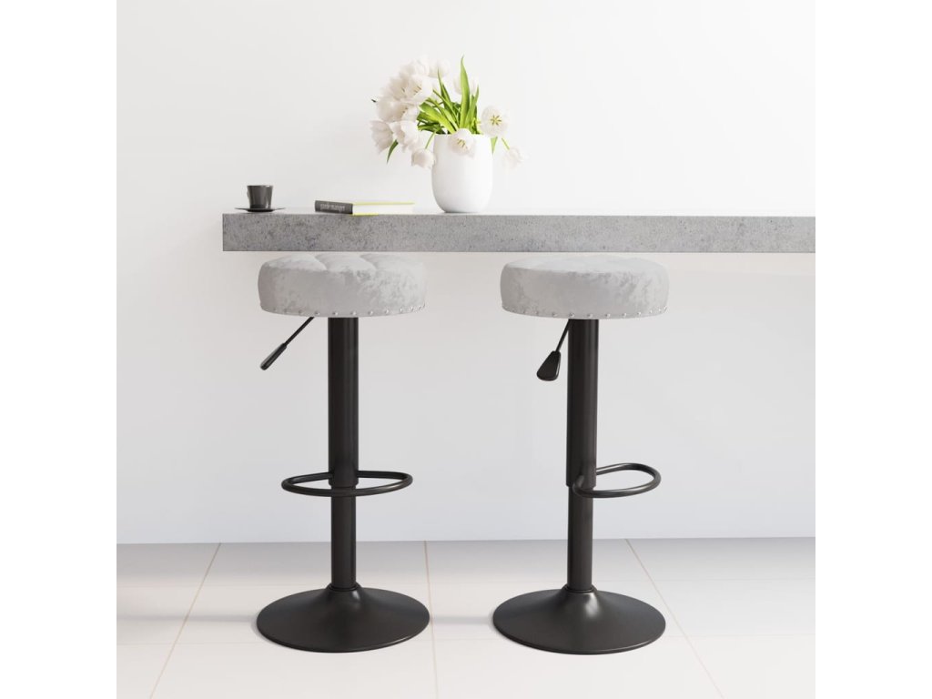 Tieto barové stoličky sú čalúnené zamatom mäkkým na dotyk a poskytujú optimálne pohodlie pri sedení. Oceľová základňa s práškovanou povrchovou úpravou zaručuje vysokú pevnosť, zatiaľ čo vstavaná opierka nôh pridáva ďalší pôžitok zo sedenia. Mechanizmus plynového piestu vám navyše umožňuje nastaviť výšku. Tieto stoličky sú dokonalým doplnkom každého funkčného baru alebo jedálenského kúta.