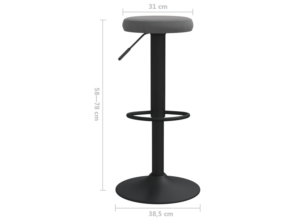 Barová stolička je čalúnená jemným zamatom, ktorý poskytuje optimálne pohodlie. Práškovaný oceľový rám dodáva stoličke vysokú odolnosť a zabudovaná opierka na nohy zvyšuje pôžitok zo sedenia. Vďaka plynovému zdvíhaciemu mechanizmu môžete túto otočnú barovú stoličku výškovo nastavovať. Bude dokonalým doplnkom každého funkčného baru alebo jedálne. Dá sa tiež otáčať o 360 stupňov, čo zaručuje veľkú variabilitu stoličky.