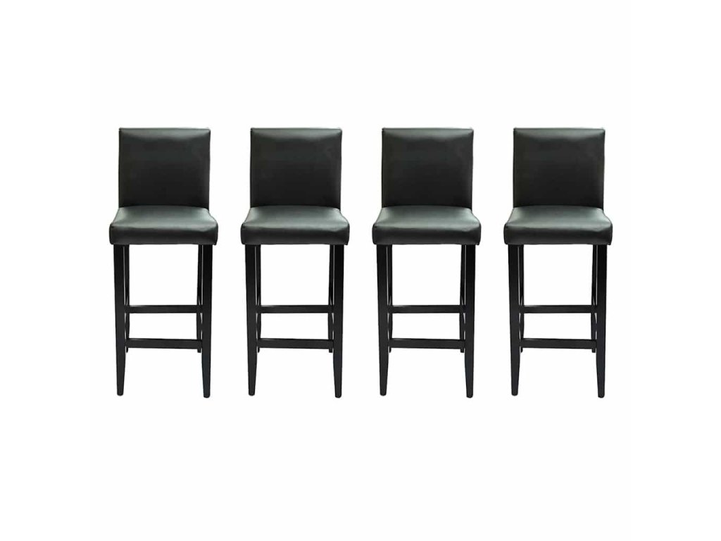 Táto sada 4 barových stoličiek v čiernej farbe má klasický dizajn, ktorý sa bude hodiť do každého moderného bývania. Sedadlo a operadlo stoličky majú poťah s hustou výplňou, a tak prinášajú optimálne pohodlie. Drevené nohy poskytujú potrebnú stabilitu a stoličkám zároveň dodávajú nádych elegancie.