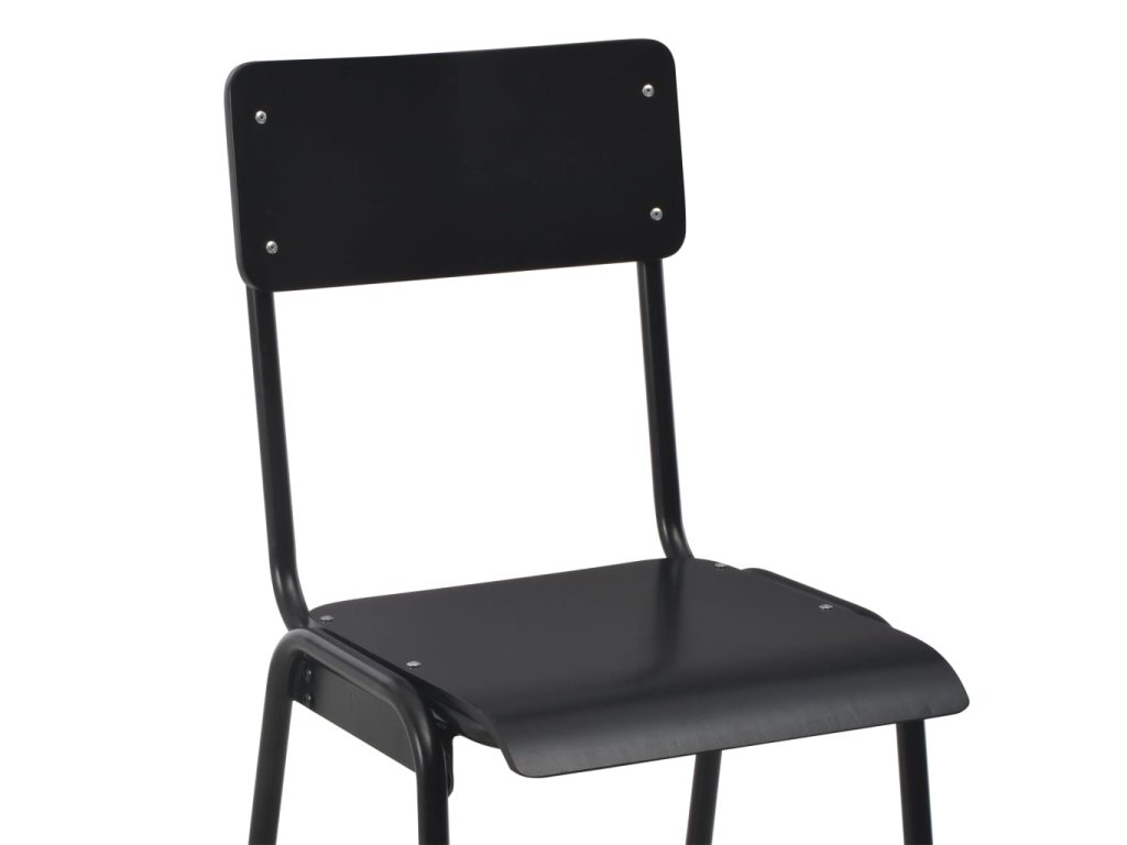 Jedálenské stoličky sú vyrobené z masívnej preglejky, vďaka čomu sú veľmi pevné, odolné a ľahko sa čistia navlhčenou handričkou. Oceľové nohy s práškovou povrchovou úpravou dodávajú stoličkám extra stabilitu. Stoličky sú navyše stohovateľné, aby sa ušetril úložný priestor, keď sa nepoužívajú.