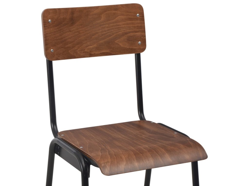 Jedálenské stoličky sú vyrobené z masívnej preglejky, vďaka čomu sú veľmi pevné, odolné a ľahko sa čistia navlhčenou handričkou. Oceľové nohy s práškovou povrchovou úpravou dodávajú stoličkám extra stabilitu. Stoličky sú navyše stohovateľné, aby sa ušetril úložný priestor, keď sa nepoužívajú.