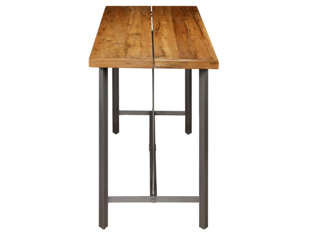 Stôl je vyrobený z recyklovaného teakového dreva, ktoré je pevný, stabilné, odolné a krásne. Robustné oceľové nohy dodávajú stolu nielen pevnosť, ale aj priemyselný štýl. Každý krok procesu výroby sa vykonáva s maximálnou starostlivosťou, či už ide o leštenie alebo lakovanie. Barový stôl sa jednoducho montuje.