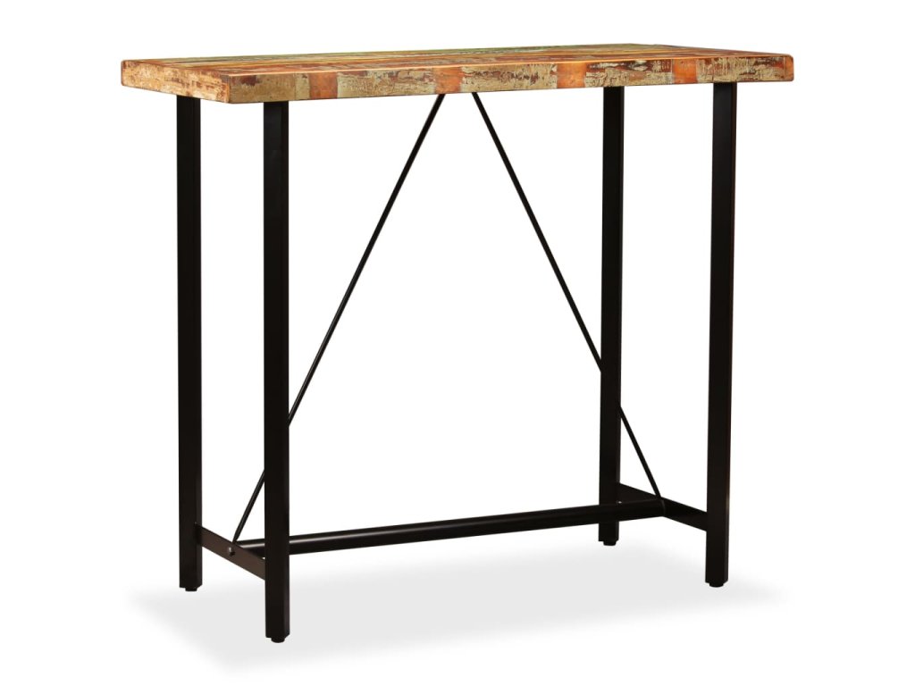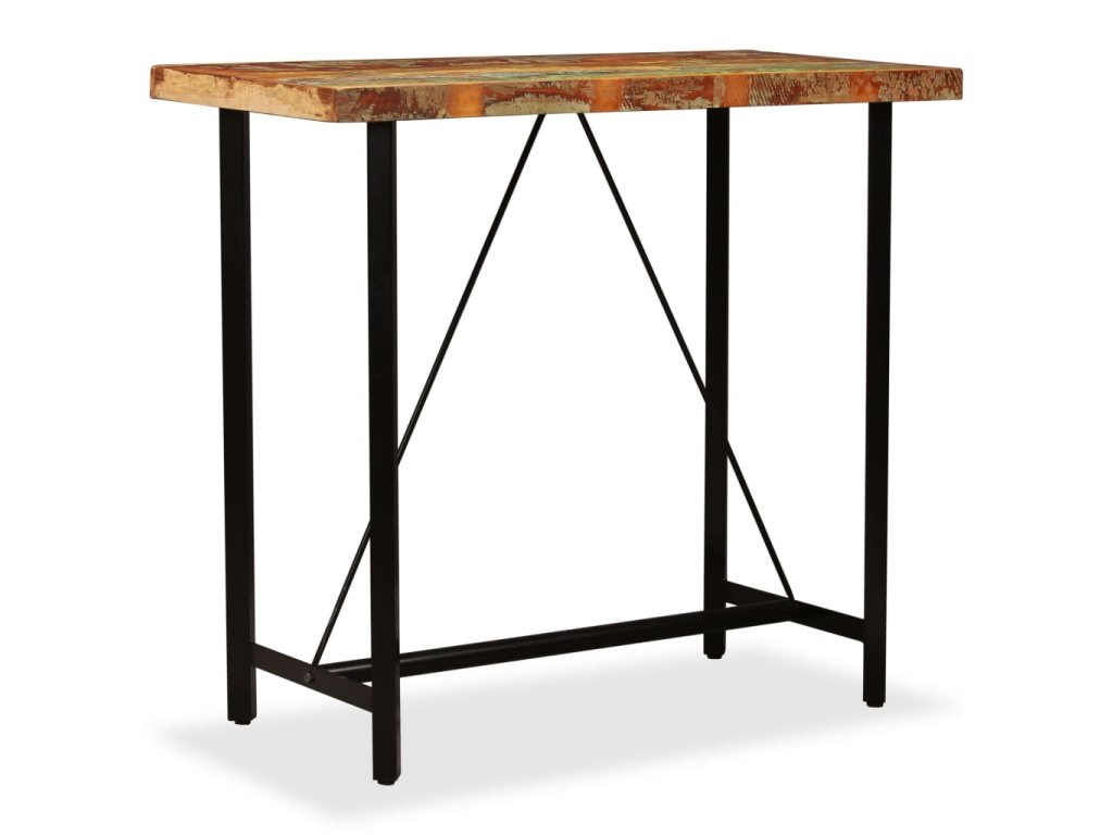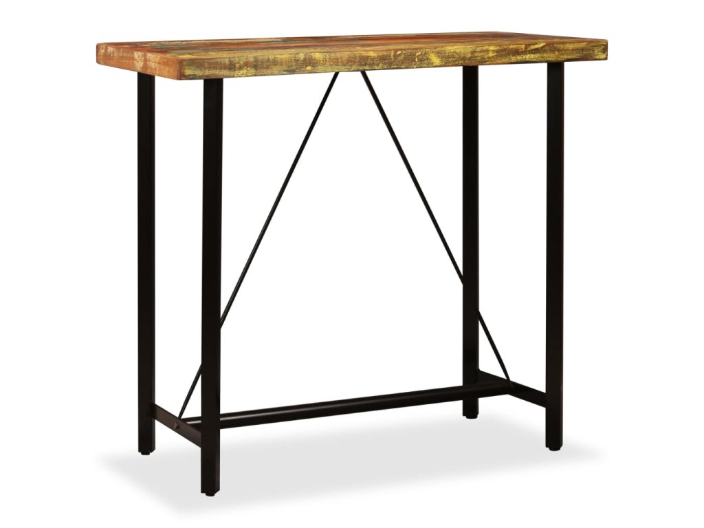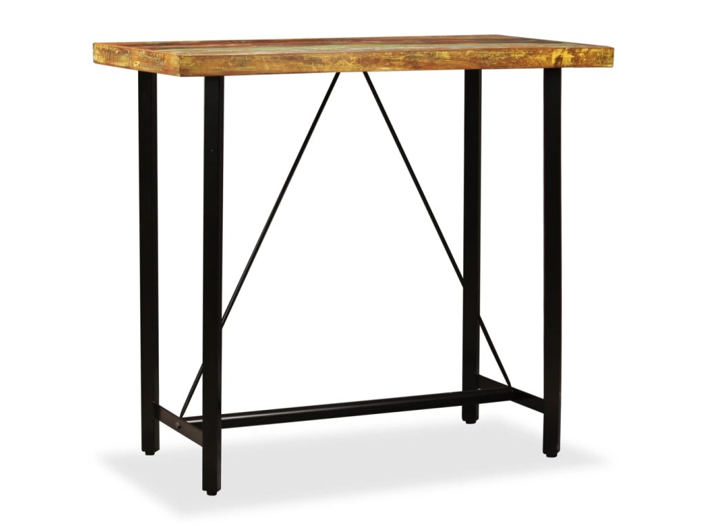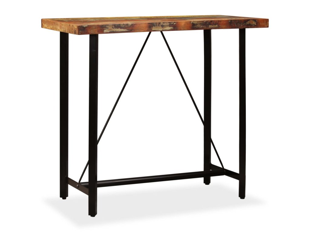 Barový stolík je vyrobený z recyklovaného masívu, ktorý má podobné vlastnosti ako napríklad tíkové, mangové, akáciové drevo a podobne. Takéto drevo je pevné, stabilné, trvácne a má zaujímavú textúru. Známky opotrebovania dodávajú každému kúsku nábytku charakteristický vzhľad a oceľová konštrukcia ešte viac umocňuje pôsobivý industriálny štýl. Každý krok procesu výroby sa uskutočňuje s maximálnou starostlivosťou, či už je to spracovanie už použitého dreva do nového výrobku, leštenie, natieranie alebo lakovanie. Montáž je jednoduchá.