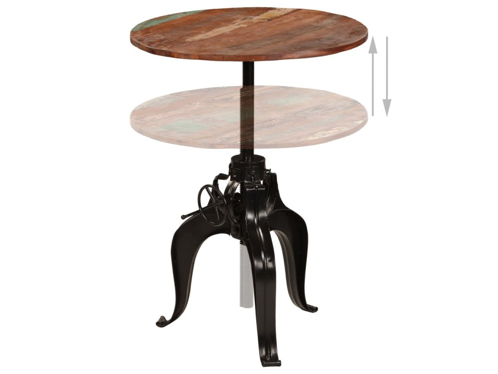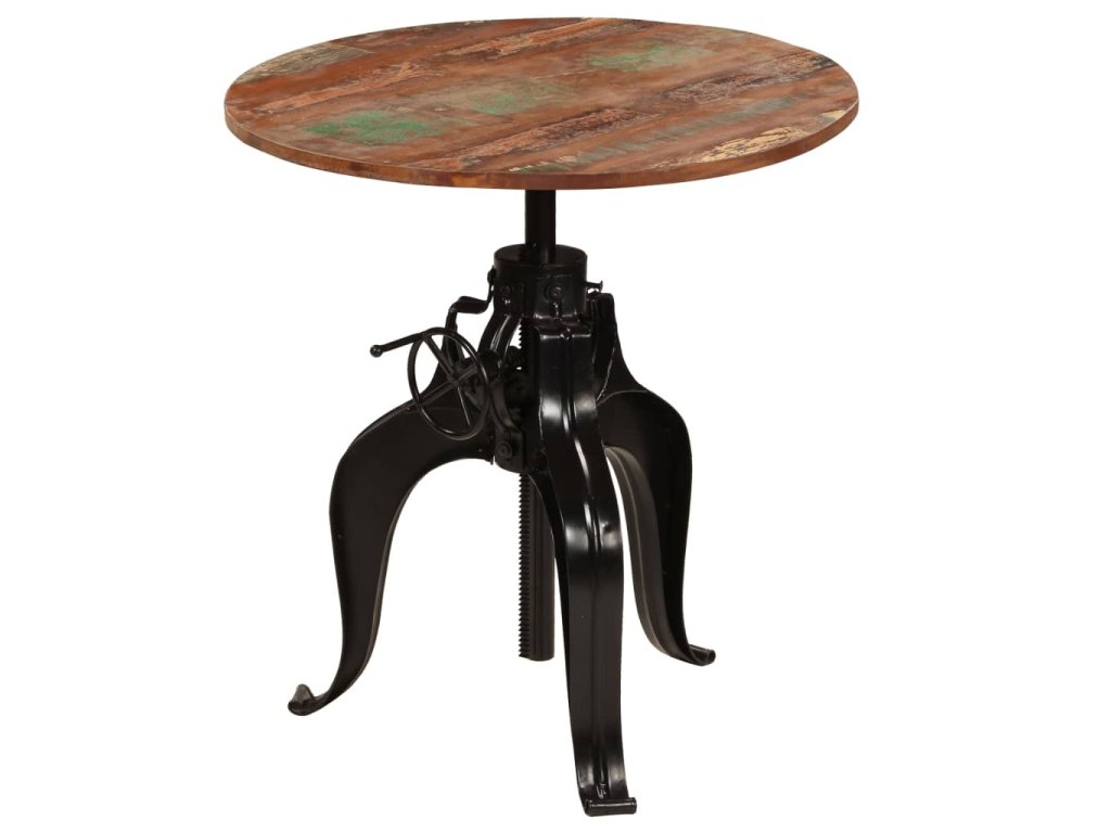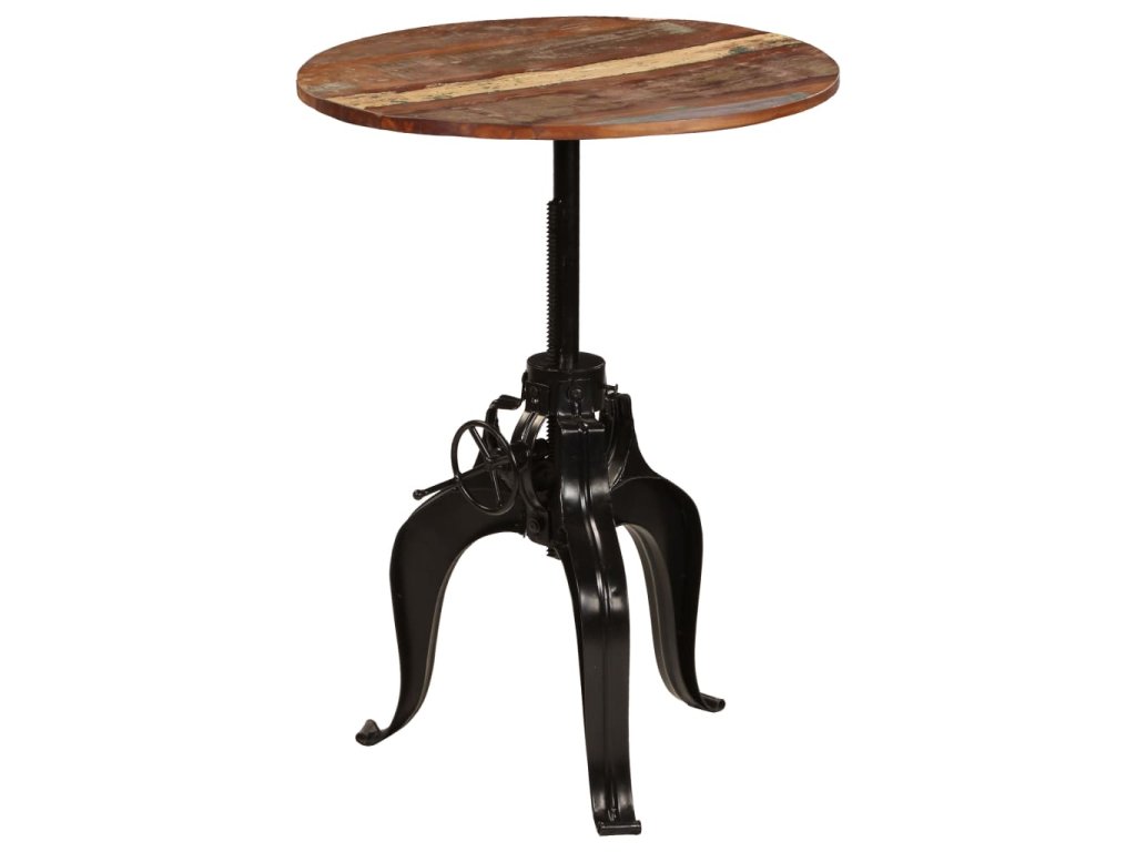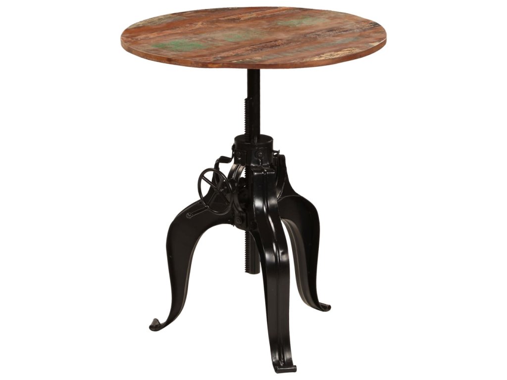 Barový stôl je vyrobený z recyklovaného masívu, ktorý pochádza z trámov, podláh a nosníkov zo starých zbúraných stavieb a pozostáva z rôznych typov dreva, ako napríklad borovicového, tíkového, bukového, dubového, cédrového, mangového či akáciového dreva. Recyklované drevo sa preto vyznačuje vlastnosťami týchto typov dreva. Je staré, zvetrané a usušené, a preto sa nezmršťuje ani neohýba. Výška stola sa dá nastaviť pre čo najväčšie pohodlie. Oceľový rám prináša potrebnú stabilitu a zároveň umocňuje industriálny vzhľad stolíka. Každý krok výrobného procesu sa vykonáva s najväčšou starostlivosťou, či už je to spracovanie už použitého dreva do nového výrobku, leštenie, natieranie alebo lakovanie. Montáž je jednoduchá.