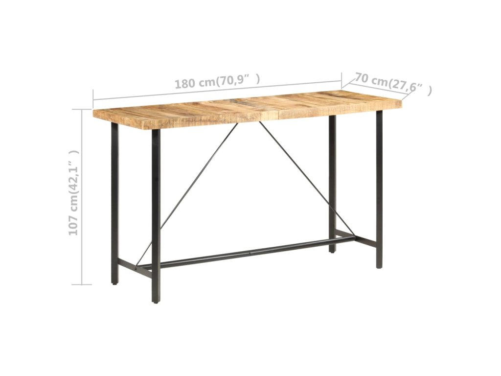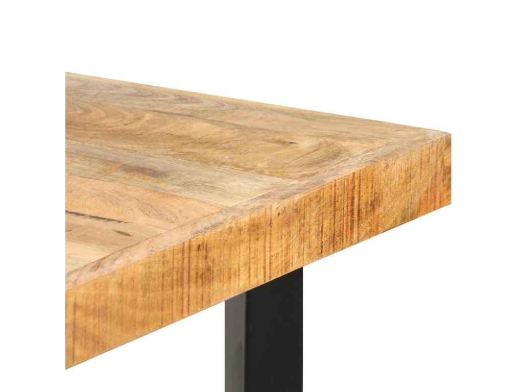 Barový stôl je vyrobený zo surového mangovníkového dreva, tropického tvrdého dreva, ktoré unesie aj vyššiu hmotnosť. Je odolný voči opotrebovaniu, pevný a trvácny. Vďaka remeselnému spracovaniu a krásnej drevenej štruktúre je každý kus nábytku jedinečný a mierne sa líši od iných kusov. Nohy z práškovaného železa poskytnú dodatočnú stabilitu.