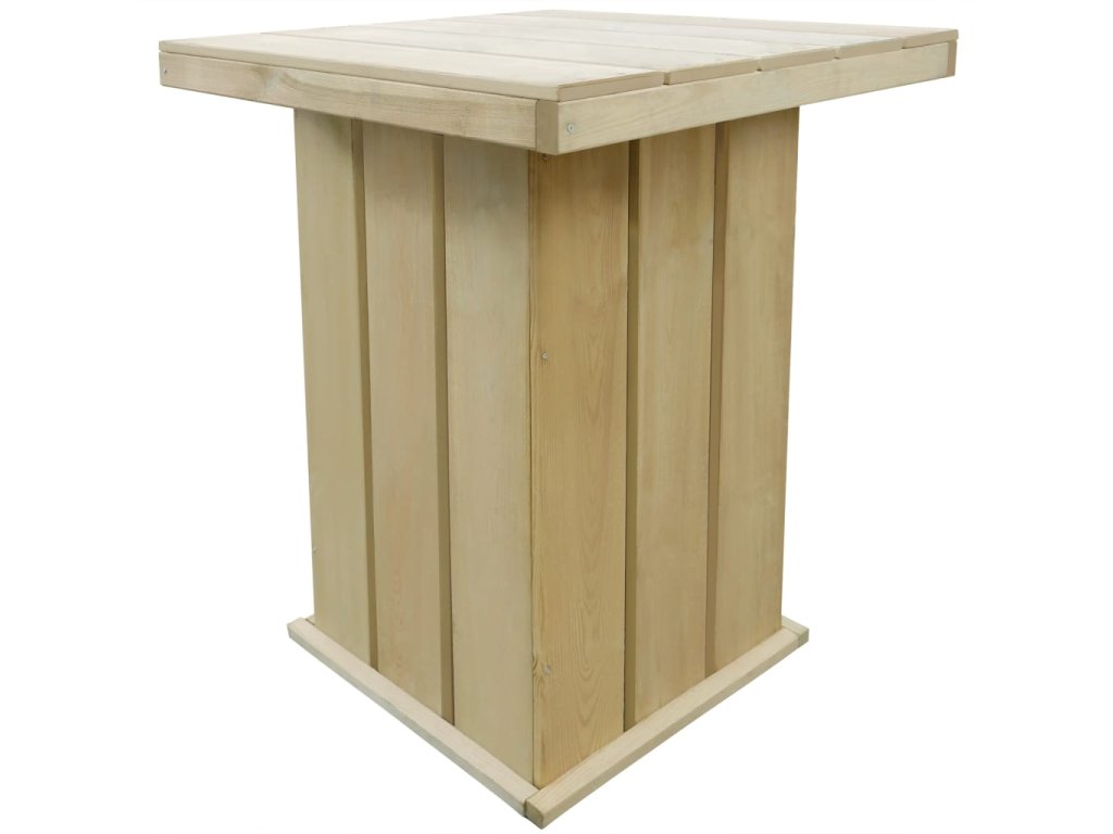 Barový stôl je vyrobený z vysokokvalitného borovicového dreva, vďaka čomu je veľmi trvácny, odolný voči hnilobe a vhodný do exteriéru. Stôl sa dá ľahko očistiť pomocou navlhčenej handričky. Stôl sa jednoducho montuje. Upozorňujeme, že drevo je prírodný materiál, a tak sa na ňom môžu vyskytnúť určité nedokonalosti.