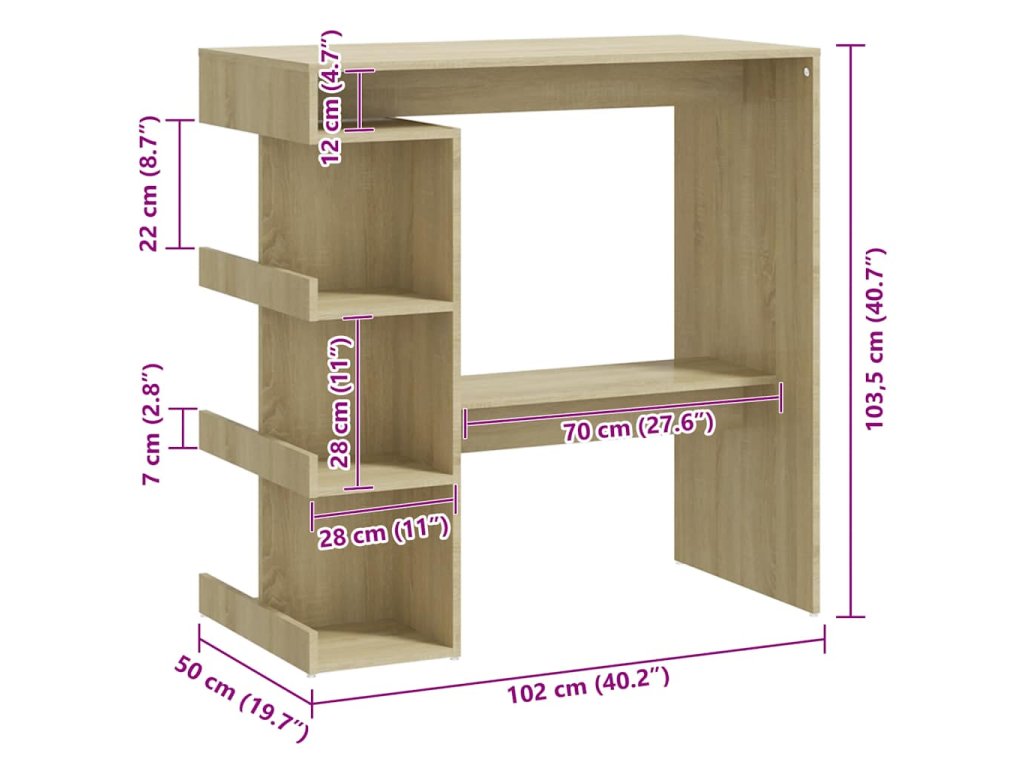 Tento barový stolík predstavuje ideálnu voľbu do menších bytov alebo miestností s obmedzeným priestorom. Má moderný dizajn, a preto vytvorí krásny doplnok vo vašej kuchyni alebo jedálni.