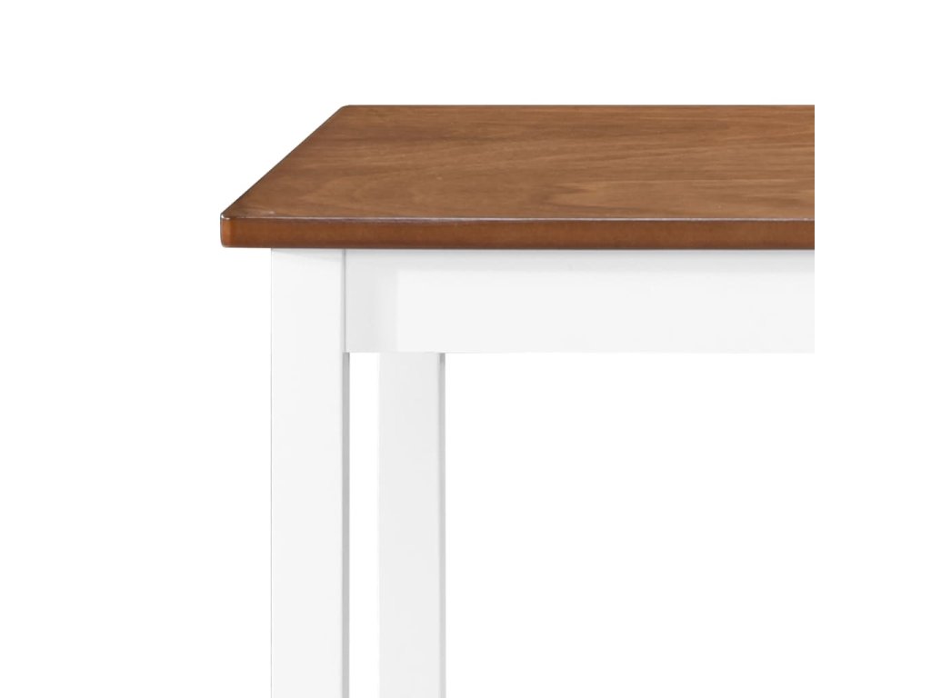 Vrchná doska stola je vyrobená z drevotriesky s drevenou dyhou a nohy sú z masívneho dreva, vďaka čomu je stolík pevný. Má krásnu povrchovú úpravu, ktorá sa dosiahla brúsením, natieraním a lakovaním. Jednoducho sa čistí vlhkou handričkou. Montáž je jednoduchá.