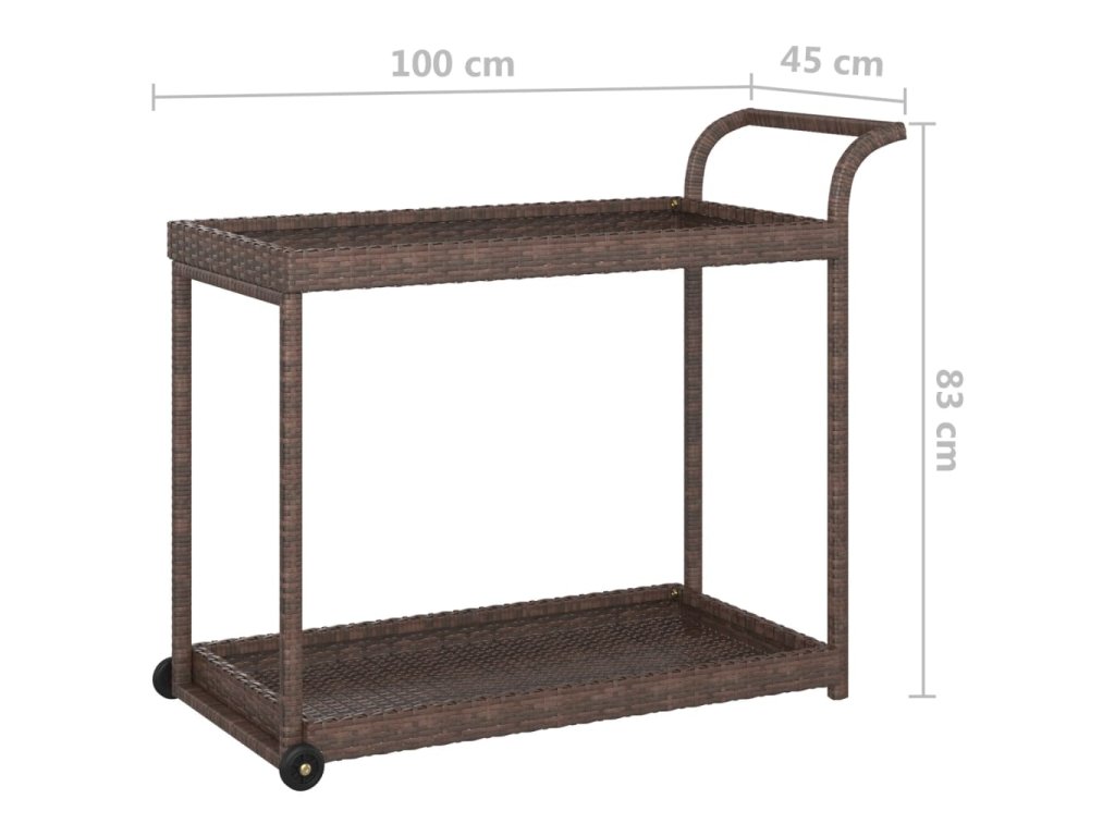 Tento vozík je vyrobený z ratanu, je odolný voči poveternostným vplyvom a vyžaduje si len nízku údržbu. Poskytuje dostatočný úložný priestor na odloženie džúsov, lahodných pokrmov, ovocia atď. Oceľový rám s práškovou povrchovou úpravou udržuje servírovací vozík stabilný a pevný. Rukoväť na vrchnej strane uľahčuje ťahanie. Vďaka kolieskam, ktoré sa hladko otáčajú, sa dá vozík bez námahy presúvať.