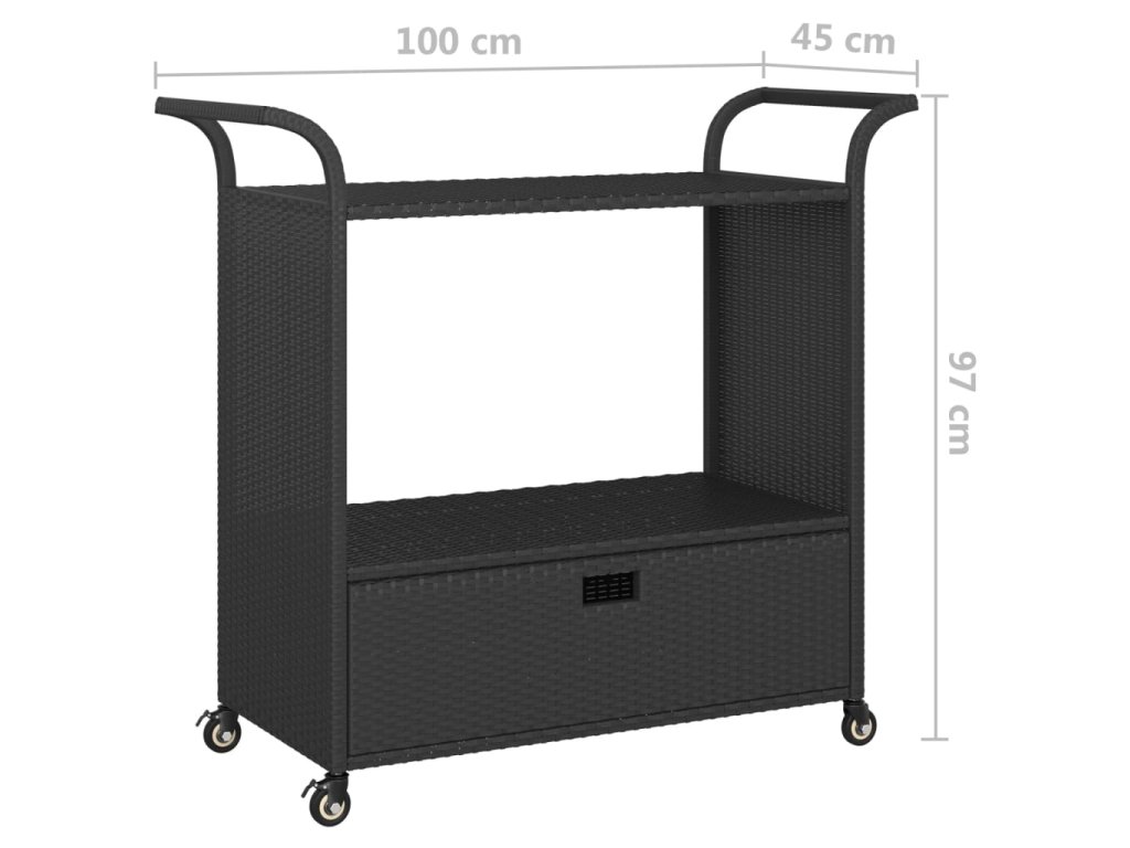 Tento vozík je vyrobený z ratanu, je odolný voči poveternostným vplyvom a vyžaduje si nízku údržbu. Je vhodný na každodenné použitie. Záhradný vozík má zásuvku, aby jedlo nespadlo na zem. Oceľový rám s práškovým nástrekom udržuje servírovací vozík stabilný a pevný. Rukoväť v hornej časti uľahčuje ťahanie. Vďaka kolieskam, ktoré sa hladko otáčajú, sa dá vozík bez námahy presúvať. Dve z koliesok majú navyše funkciu uzamknutia, aby sa vozík nevrátil späť.