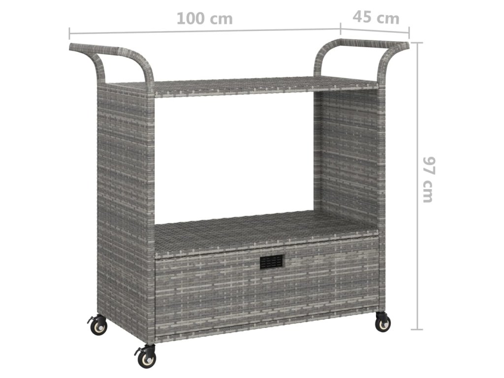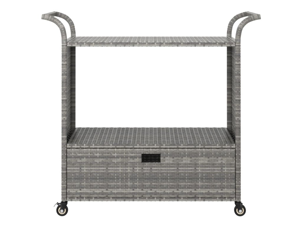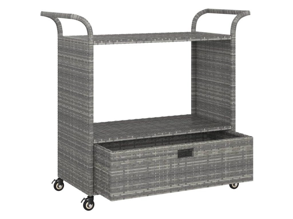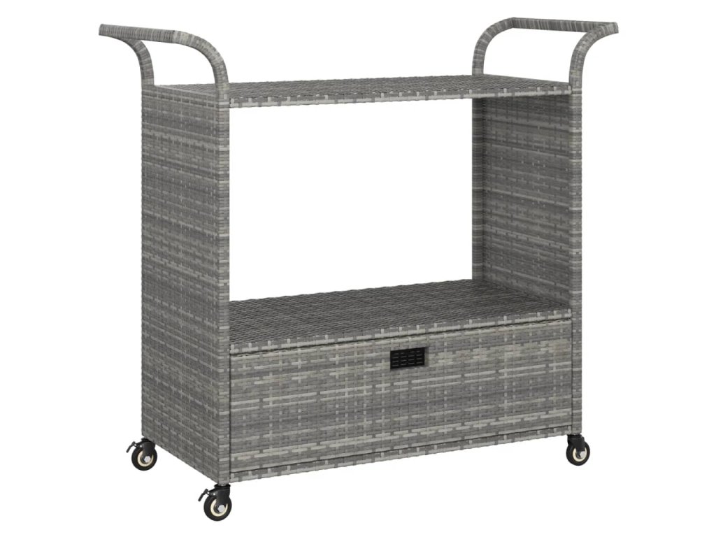 Tento vozík je vyrobený z ratanu, je odolný voči poveternostným vplyvom a vyžaduje si nízku údržbu. Je vhodný na každodenné použitie. Záhradný vozík má zásuvku, aby jedlo nespadlo na zem. Oceľový rám s práškovým nástrekom udržuje servírovací vozík stabilný a pevný. Rukoväť v hornej časti uľahčuje ťahanie. Vďaka kolieskam, ktoré sa hladko otáčajú, sa dá vozík bez námahy presúvať. Dve z koliesok majú navyše funkciu uzamknutia, aby sa vozík nevrátil späť.