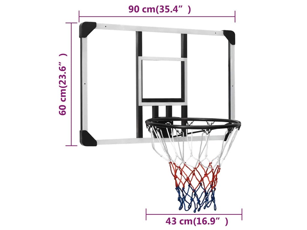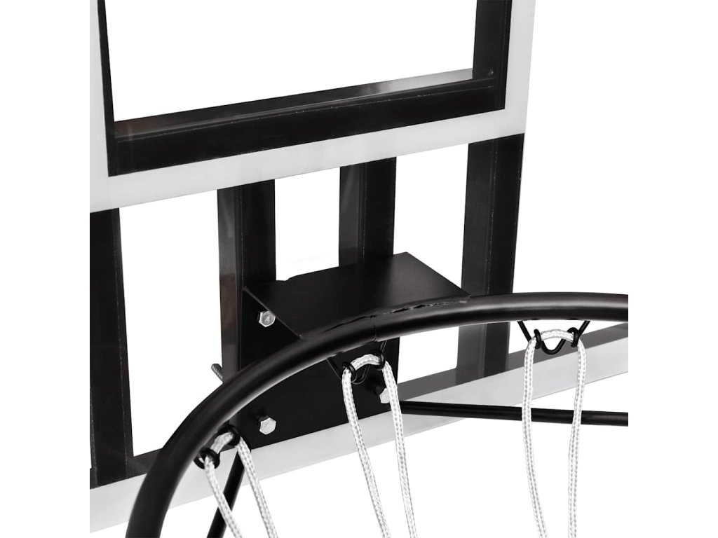 - Odolný materiál: Basketbalová doska je vyrobená z polykarbonátu, vďaka čomu je vysoko odolný a pevný, ako aj odolný voči poveternostným vplyvom a ľahko sa čistí. Klasická oceľová basketbalová obruč s nylonovou sieťkou do každého počasia tiež zaisťuje dlhú životnosť basketbalovej obruče.