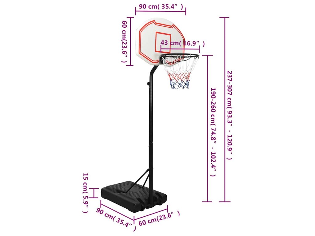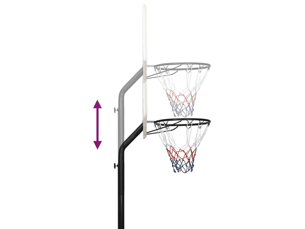 - Nastaviteľná výška: Stojan na basketbalový kôš má nastaviteľnú výšku a môže sa vytiahnuť tak, aby vyhovoval rôznym hráčom. Tento basketbalový stojan je možné nastaviť na výšku od 237 cm do 307 cm.