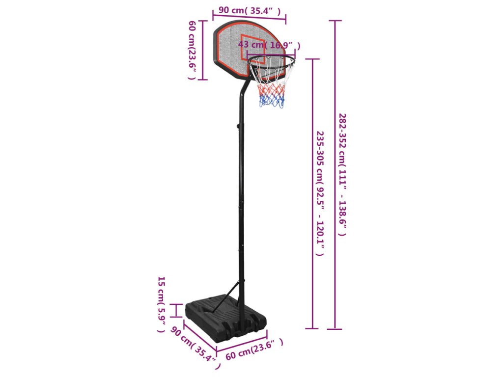 - Nastaviteľná výška: Stojan na basketbalový kôš má nastaviteľnú výšku a môže sa vytiahnuť tak, aby vyhovoval rôznym hráčom. Tento basketbalový stojan je možné nastaviť na výšku od 282 cm do 352 cm.