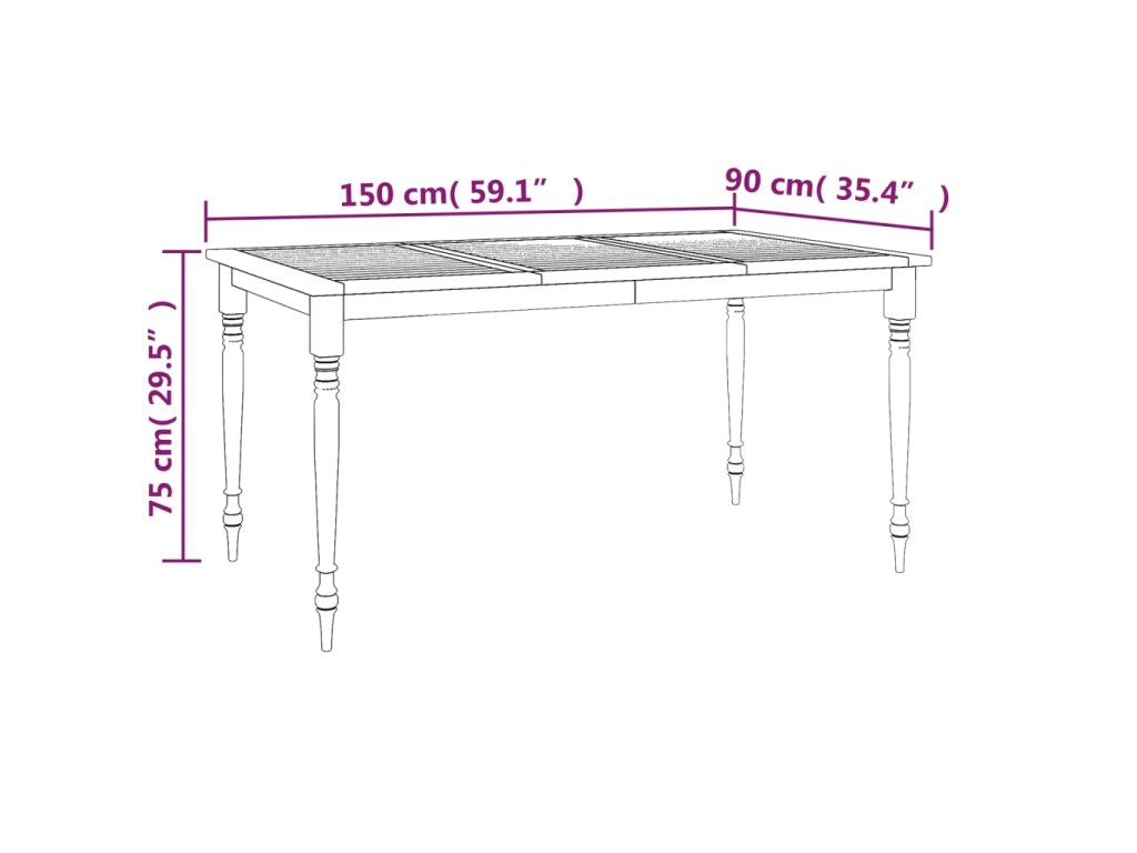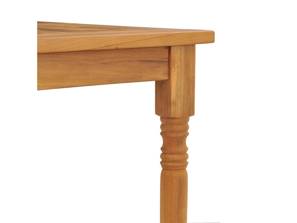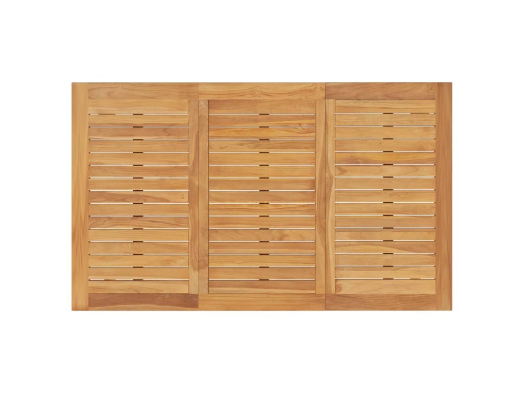 - Masívne teakové drevo: Masívne teakové drevo je krásny prírodný materiál. Bolo vyzreté, umelo vysušené a jemne obrúsené, čo mu dalo veľmi hladký vzhľad. Teakové drevo je známe svojou výnimočnou pevnosťou a odolnosťou voči poveternostným vplyvom.
