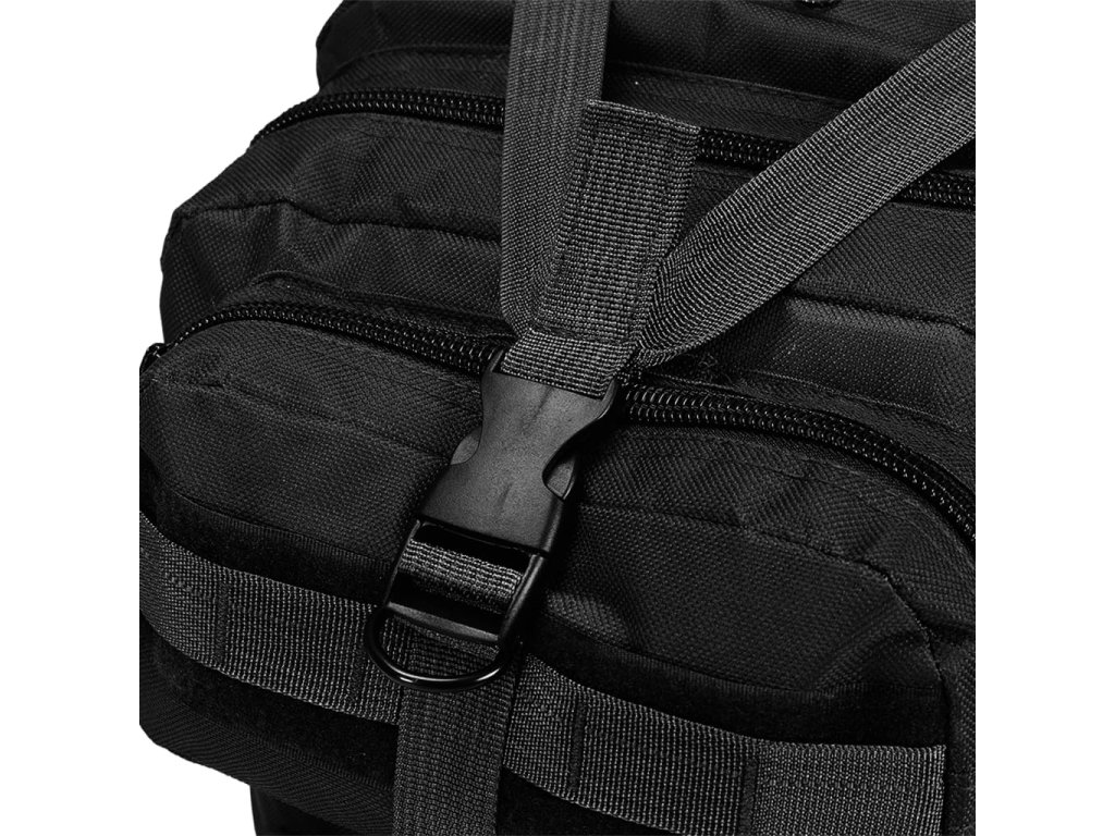 - Pohodlné popruhy: Ruksak v armádnom štýle má dva polstrované a nastaviteľné ramenné popruhy, kompresné popruhy a nastaviteľný a odnímateľný hrudný a bedrový pás.
