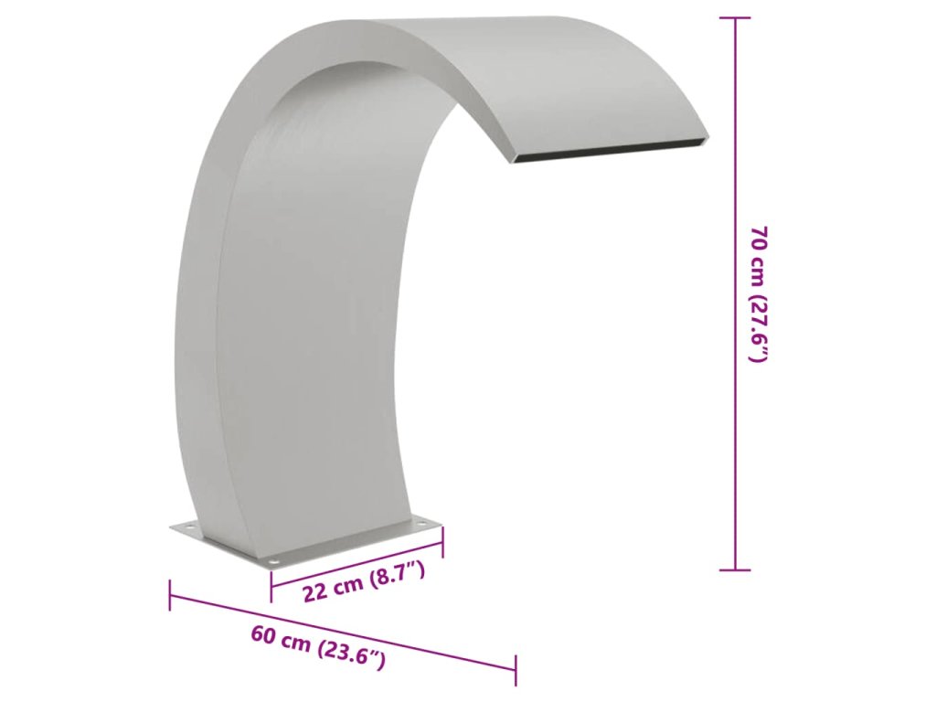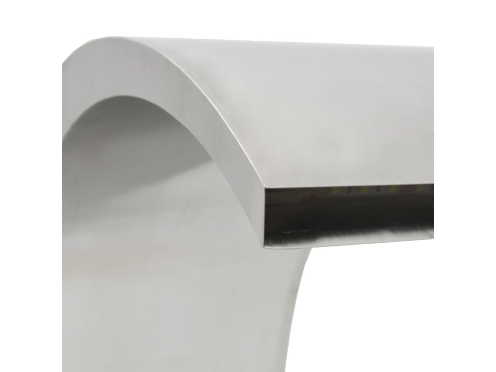 Je vyrobená z prvotriednej nehrdzavejúcej ocele 304, ktorá je odolná voči poškodeniu chlórovanou vodou, vďaka čomu je skutočne trvácna. Je špeciálne navrhnutá tak, aby zaručovala konštantný a rovnomerný prúd vody. Vodopád je vybavený LED svetlami a adaptér je súčasťou balenia. Fontána sa dodáva spolu s príslušenstvom potrebným na jej pripojenie k vodnému čerpadlu. Zakúpte si túto fontánu a vychutnajte si pohľad na pekný vodopád a príjemný zvuk žblnkajúcej vody.