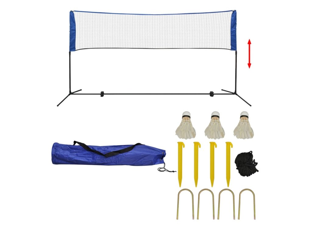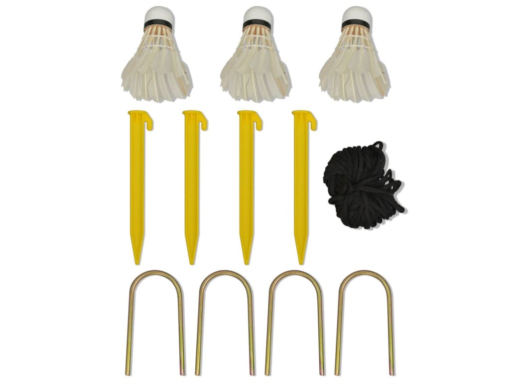 Balenie obsahuje: 1 bedmintonovú sieť a rám, 3 košíky, 4 železné kolíky, 4 plastové kolíky, 2 PP laná a 1 prenosnú tašku.