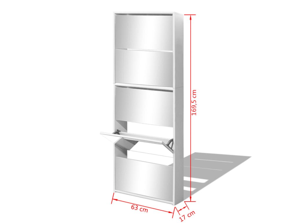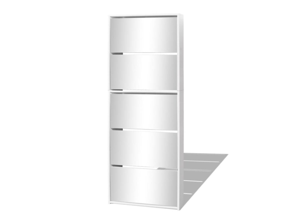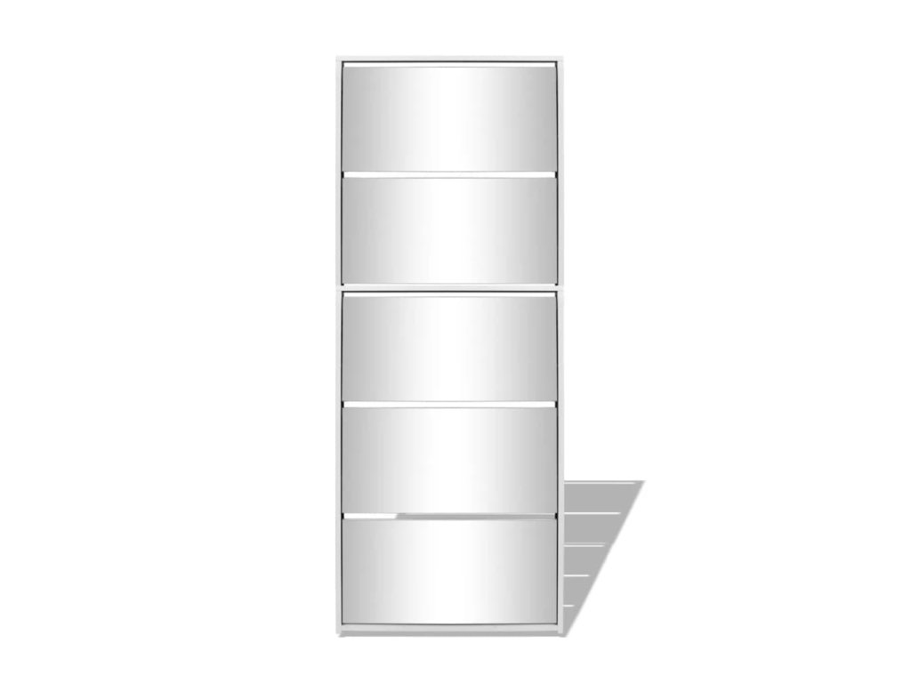 Botník so zrkadlom má päť vyťahovacích šuplíkov a v každom je možné odložiť 3 až 4 páry topánok. Táto polica na topánky je primontovaná rovno k stene. Tento pevný a odolný botník je vyrobený z vysokokvalitného materiálu a vytvára veľmi praktické miesto pre štýlové a úhľadné uloženie vašich topánok.