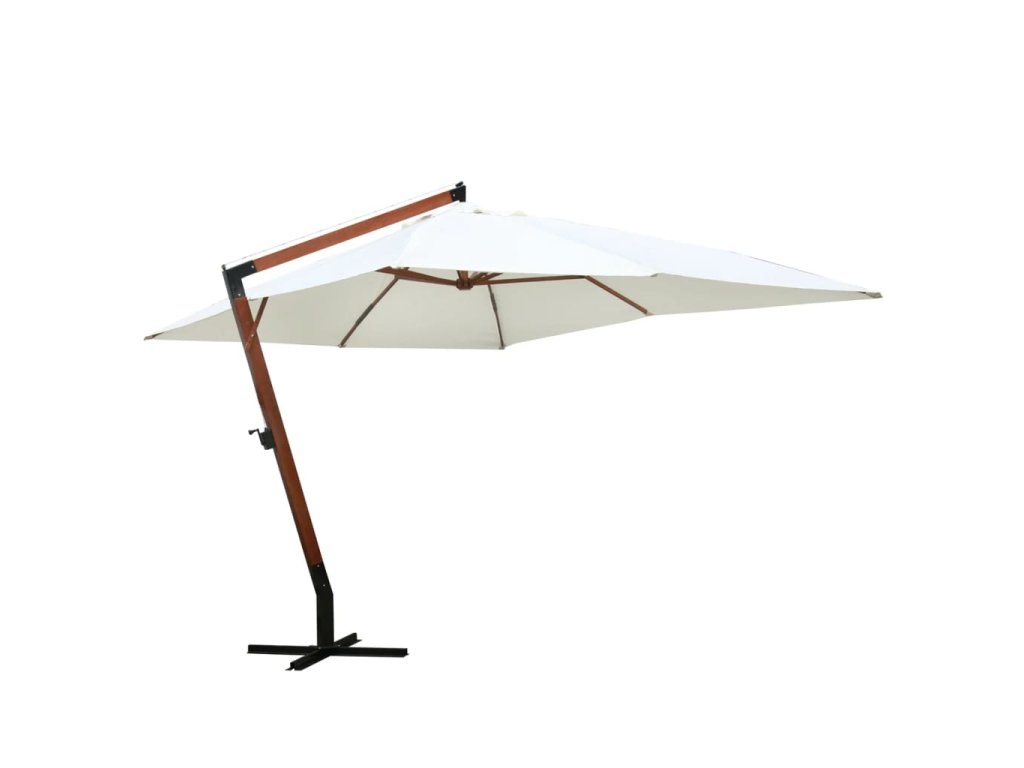 Krásny a veľký plávajúci slnečník s dreveným stojanom.