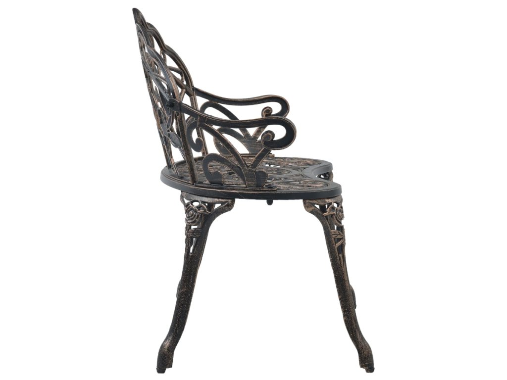 Táto záhradná lavička je vyrobená z odlievaného hliníka, vďaka čomu je odolná voči poveternostným vplyvom a veľmi trvácna. Nohy z odlievaného železa jej dodávajú potrebnú pevnosť. Precízne ornamenty a očarujúci motív kvetov prinesú do každej záhrady či iných vonkajších priestorov punc elegancie. Táto lavička do parku poskytuje miesto pre 2 osoby.