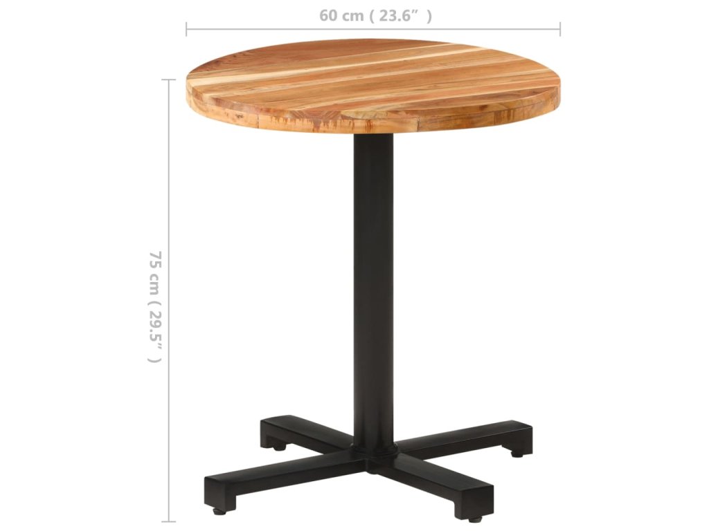 Stolová doska je vyrobená z masívneho akáciového dreva s prírodnou povrchovou úpravou, čiže je stabilná a trvácna. Čierna práškovaná železná základňa stolíku dodáva stabilitu a odolnosť. Tento stolík poslúži na odloženie nápojov alebo akejkoľvek inej veci, ktorú potrebujete mať po ruke.