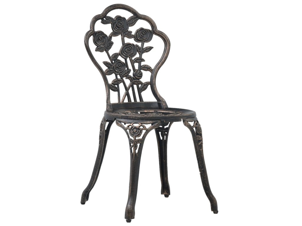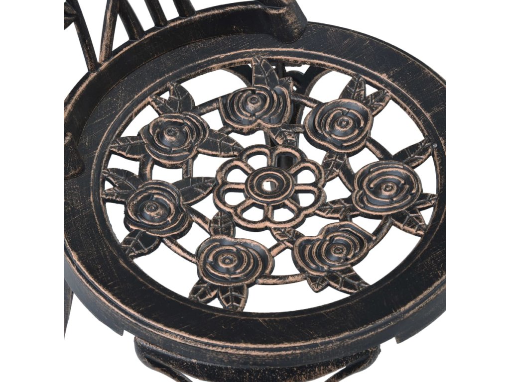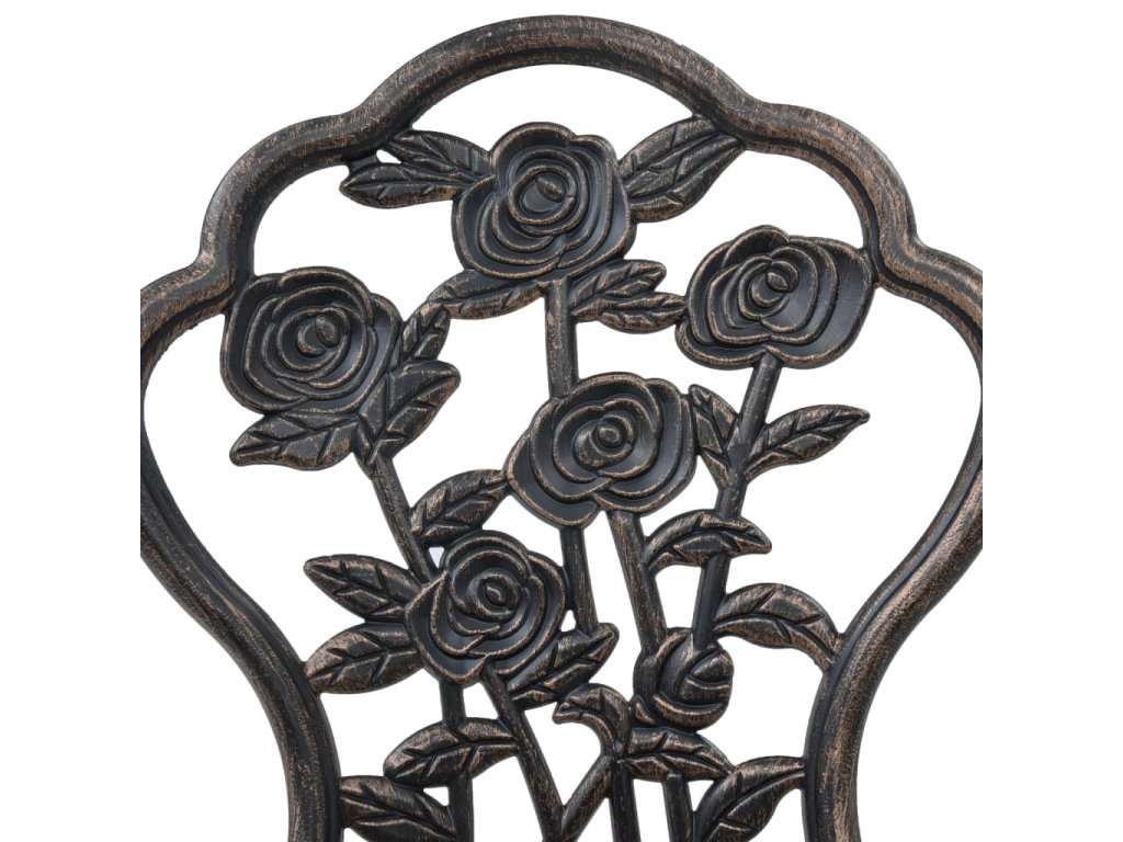 Súprava v bistro štýle je vyrobená z odlievaného hliníka, ktorý je veľmi trvácny a odolný voči poveternostným vplyvom. Nohy z liatiny dodávajú sade potrebnú stabilitu. Detailne prepracovaný kvetovaný vzor vnesie nádych romantickej atmosféry do každej záhrady, na terasu či do zimnej záhrady.