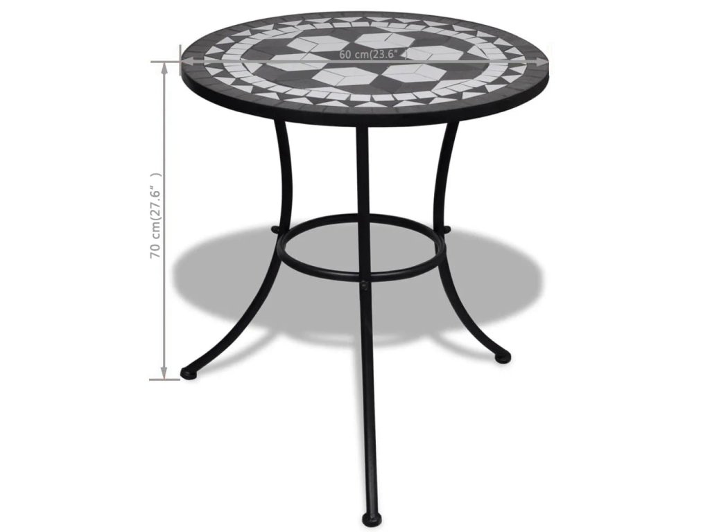 Železný rám s práškovou povrchovou úpravou dodáva stolíku vysokú stabilitu. Keramická doska sa dá ľahko očistiť. Montáž je veľmi jednoduchá. Upozorňujeme, že nie je vhodné stolík nechávať vonku pri nízkych teplotách.