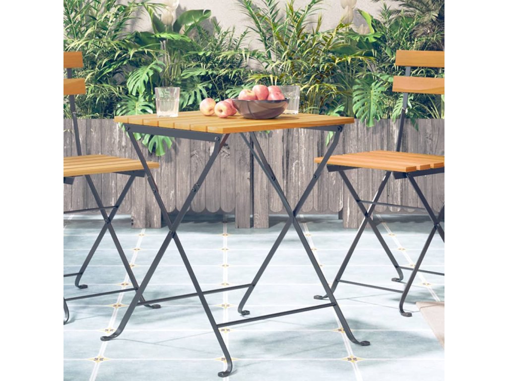 Tento vonkajší stôl je vyrobený z masívneho akáciového dreva, tvrdého dreva s bohatou štruktúrou. Tento krásne navrhnutý záhradný stôl je stabilný, odolný a pútavý. Vďaka vynikajúcemu remeselnému spracovaniu a bohatej štruktúre dreva je každý kus mierne odlišný. Vďaka oceľovým nohám je pevný. Ľahko čistiteľná doska je tiež ideálna na umiestnenie nápojov, jedla atď. Stolík môžete sklopiť a ušetriť tak miesto, keď ho nepoužívate.