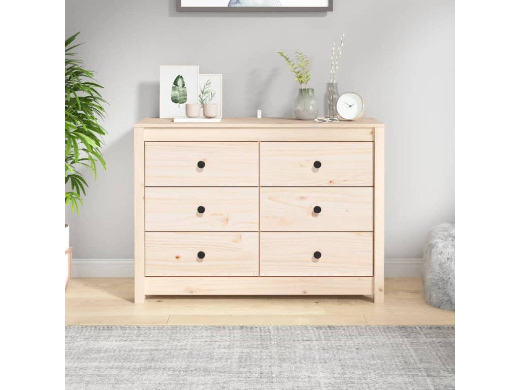 - Masívne borovicové drevo: Táto skrinka je vyrobená z masívneho borovicového dreva. Masívne borovicové drevo je krásny prírodný materiál. Borovicové drevo má rovnú štruktúru a uzly dodávajú materiálu jeho typický rustikálny vzhľad.