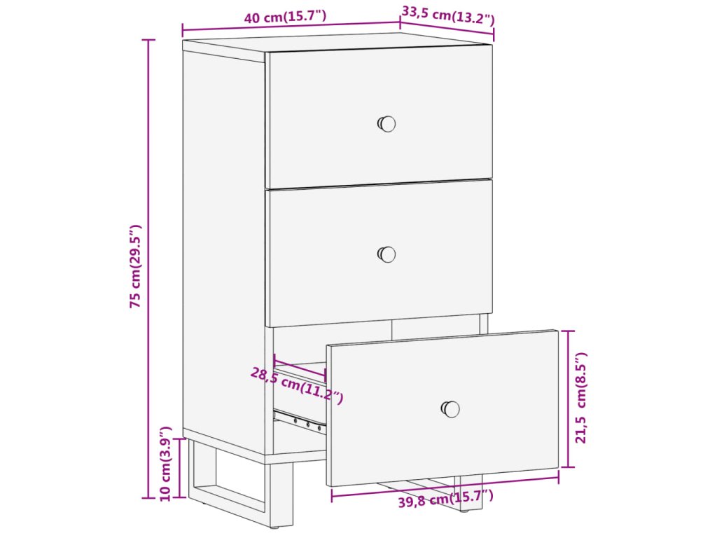 - Pevné nohy: Železné nohy dodávajú bočnej skrinke robustnosť a stabilitu.