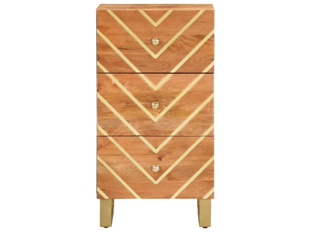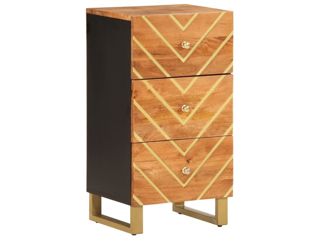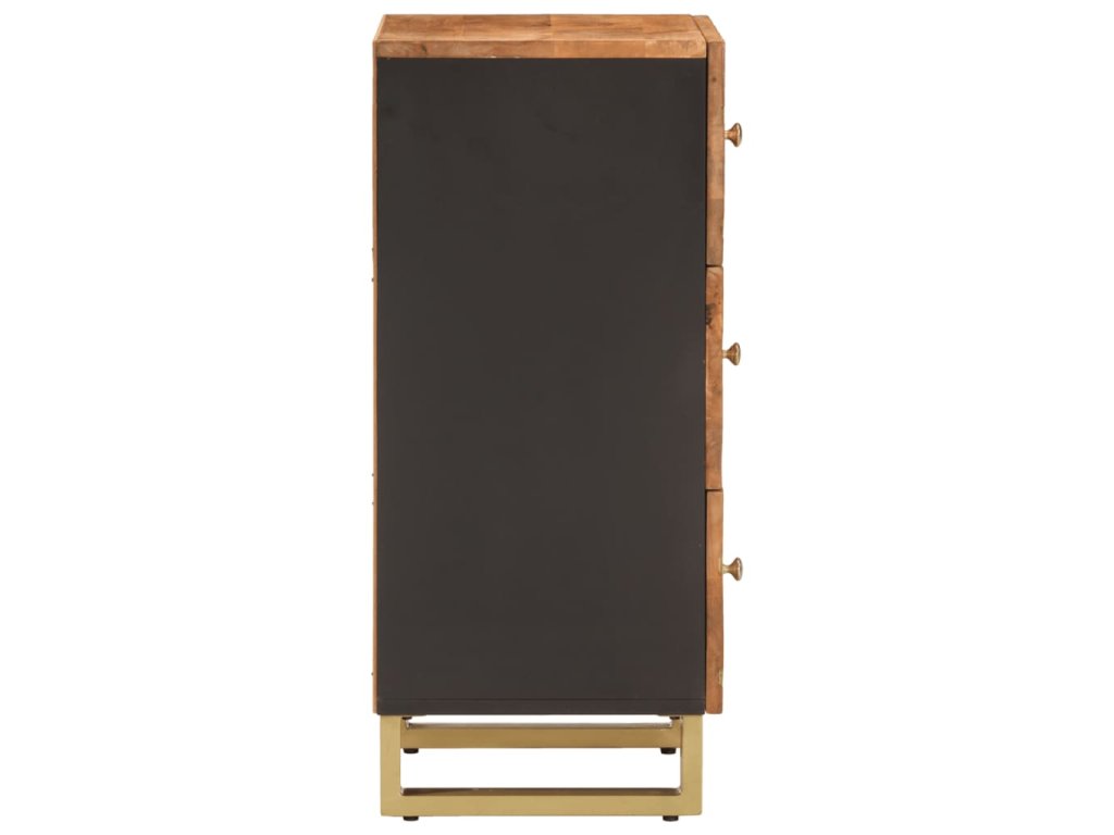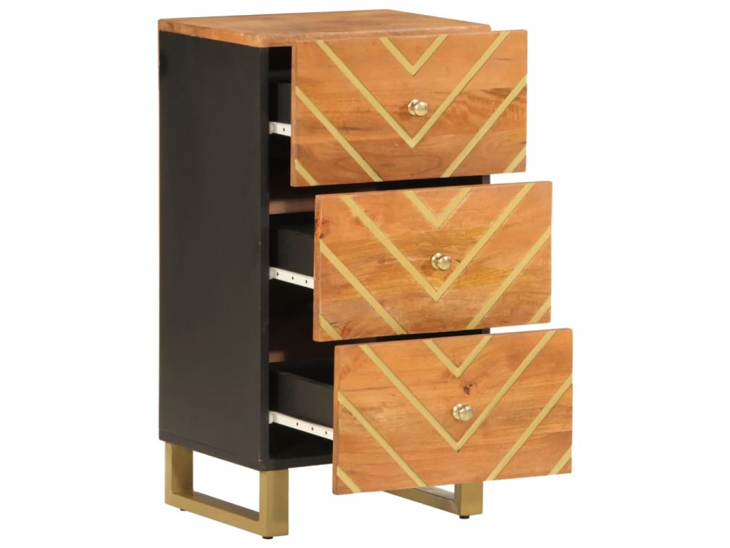 - Materiál: Mangovníkový masív s povrchovou úpravou v akáciovej farbe, MDF, železo