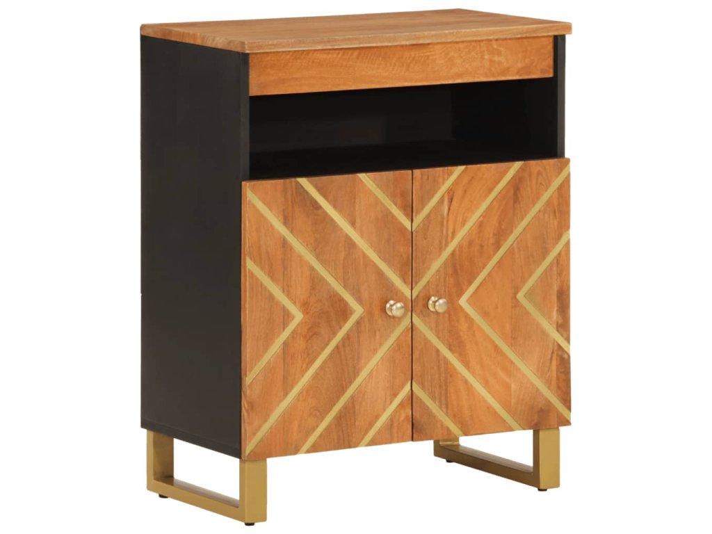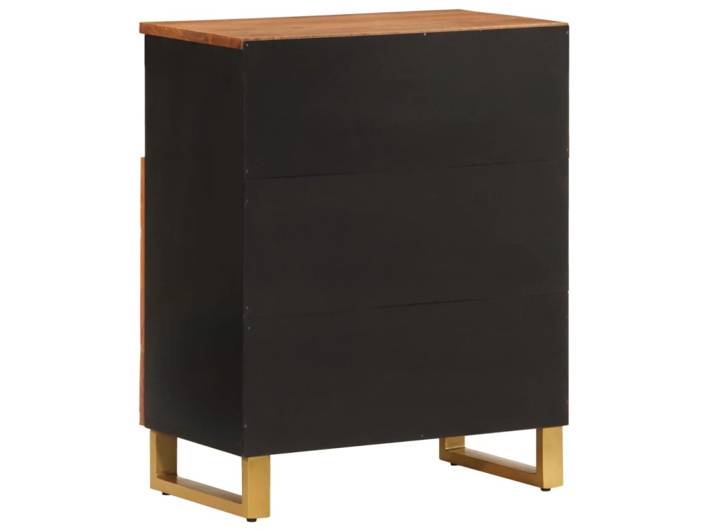 - Materiál: Mangovníkový masív s povrchovou úpravou v akáciovej farbe, MDF, železo