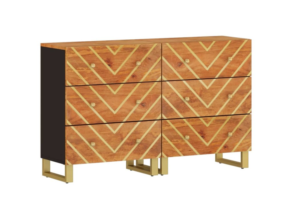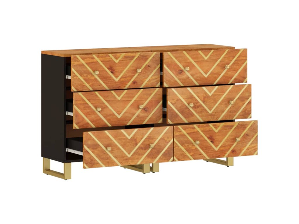 - Materiál: Mangovníkový masív s povrchovou úpravou v akáciovej farbe, MDF, železo