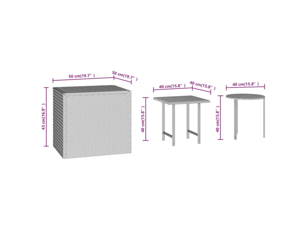- Rozmery štvorcového stolíka: 40 x 40 x 40 cm (D x Š x V)