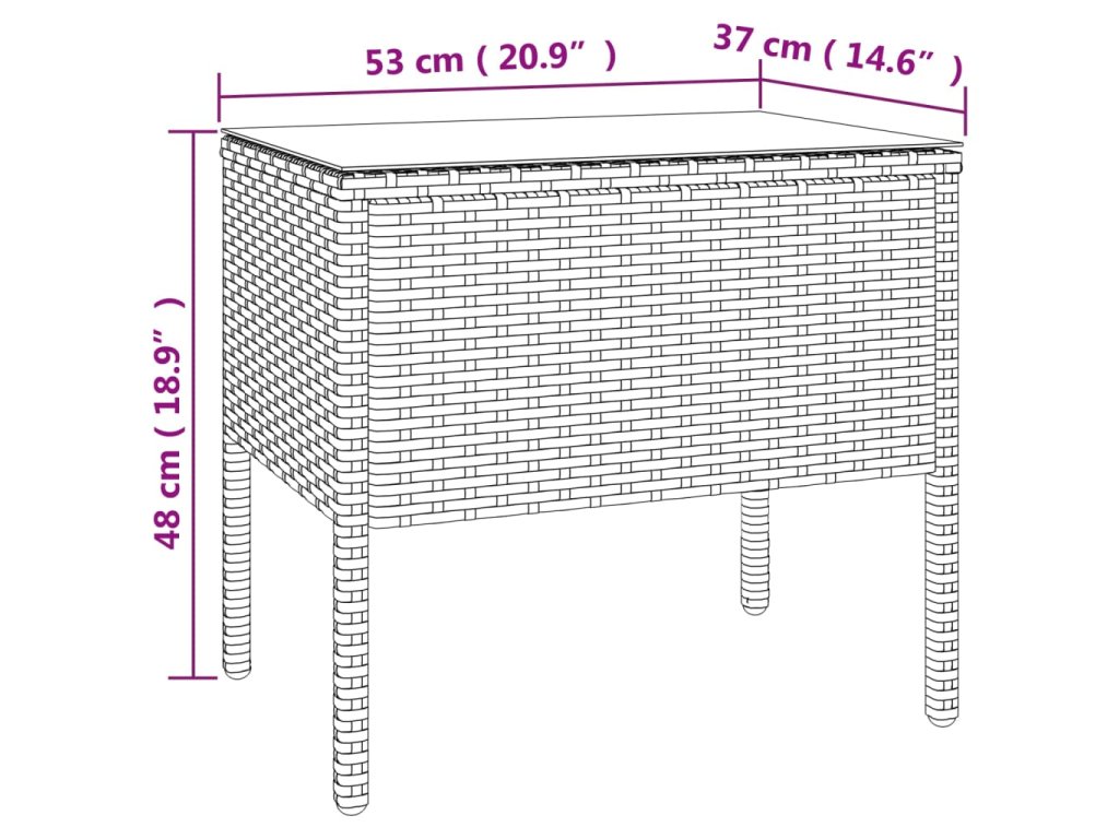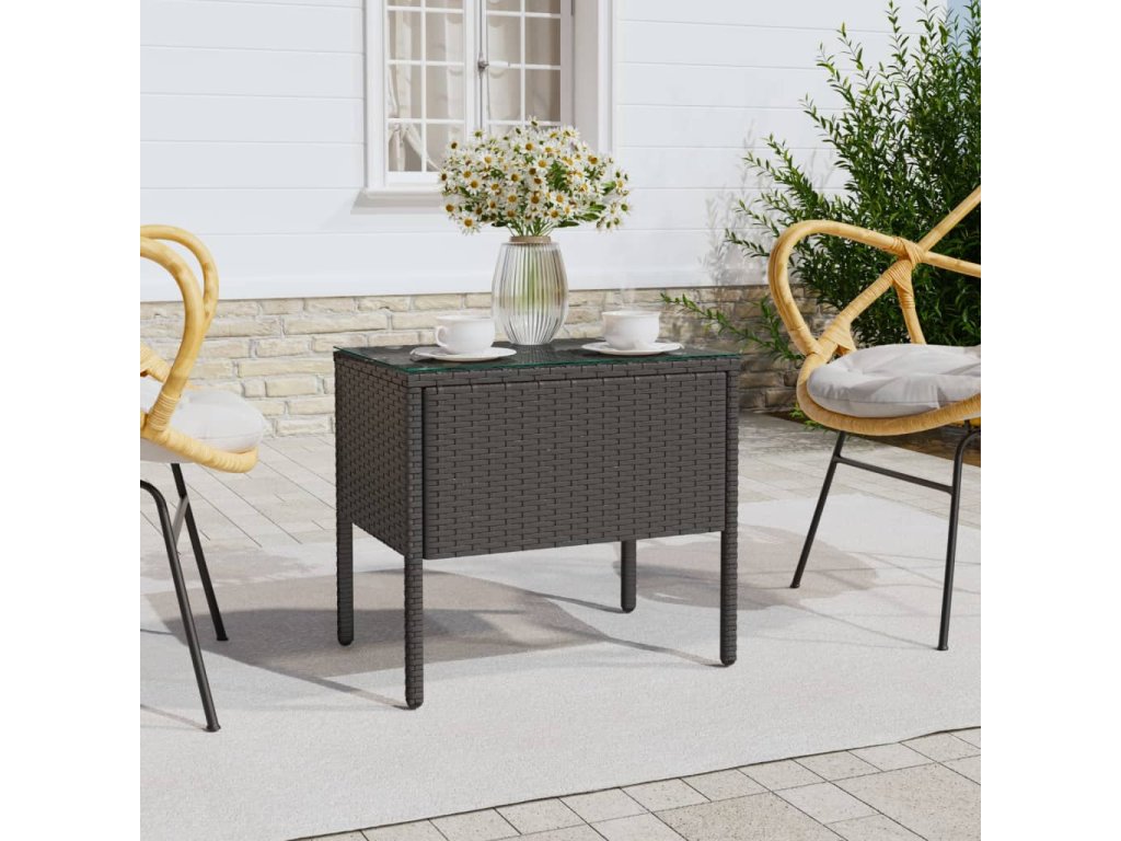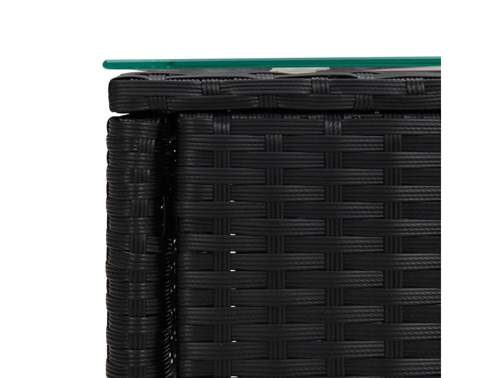 - Materiál: PE ratan, oceľ s práškovou povrchovou úpravou, tvrdené sklo