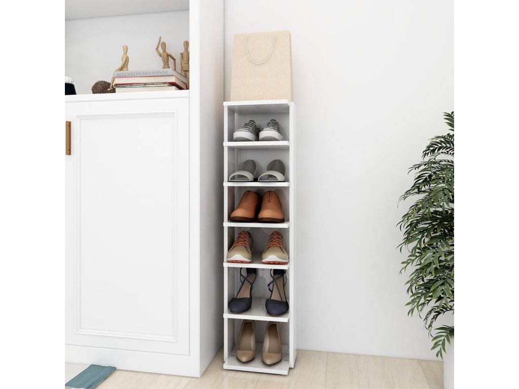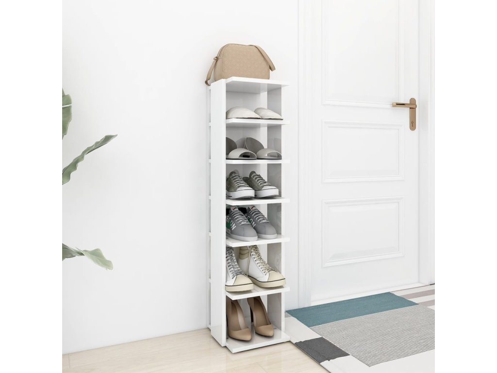 Je vyrobená z kvalitného kompozitného dreva, ktorá jej dodáva rafinovaný vzhľad a zabezpečuje jej stabilitu a odolnosť. Táto skrinka na topánky zaberá len málo miesta a je ideálna do úzkych kútov, napríklad do priestoru pod schodmi. Obsahuje 6 políc a možno do nej uložiť veľa topánok.
