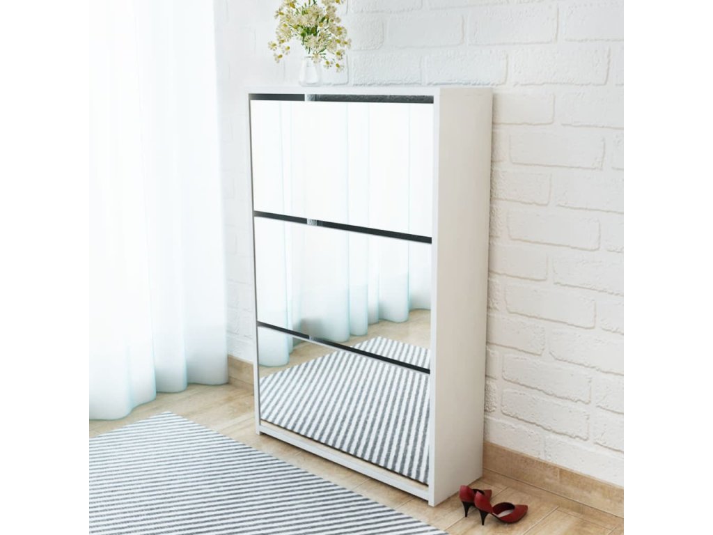 Tento moderný a štýlový zrkadlový botník je dokonalým riešením na uloženie a usporiadanie topánok v miestnosti.