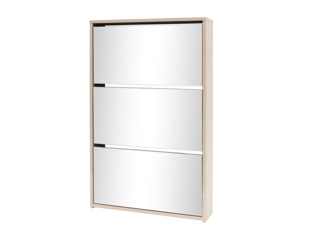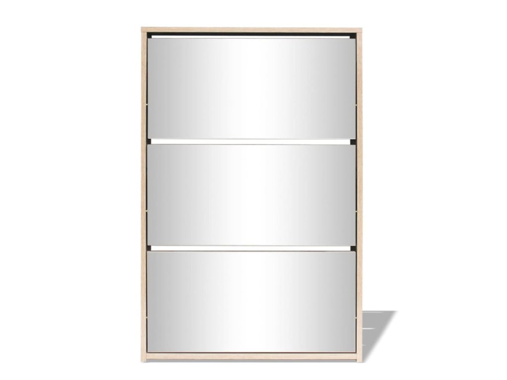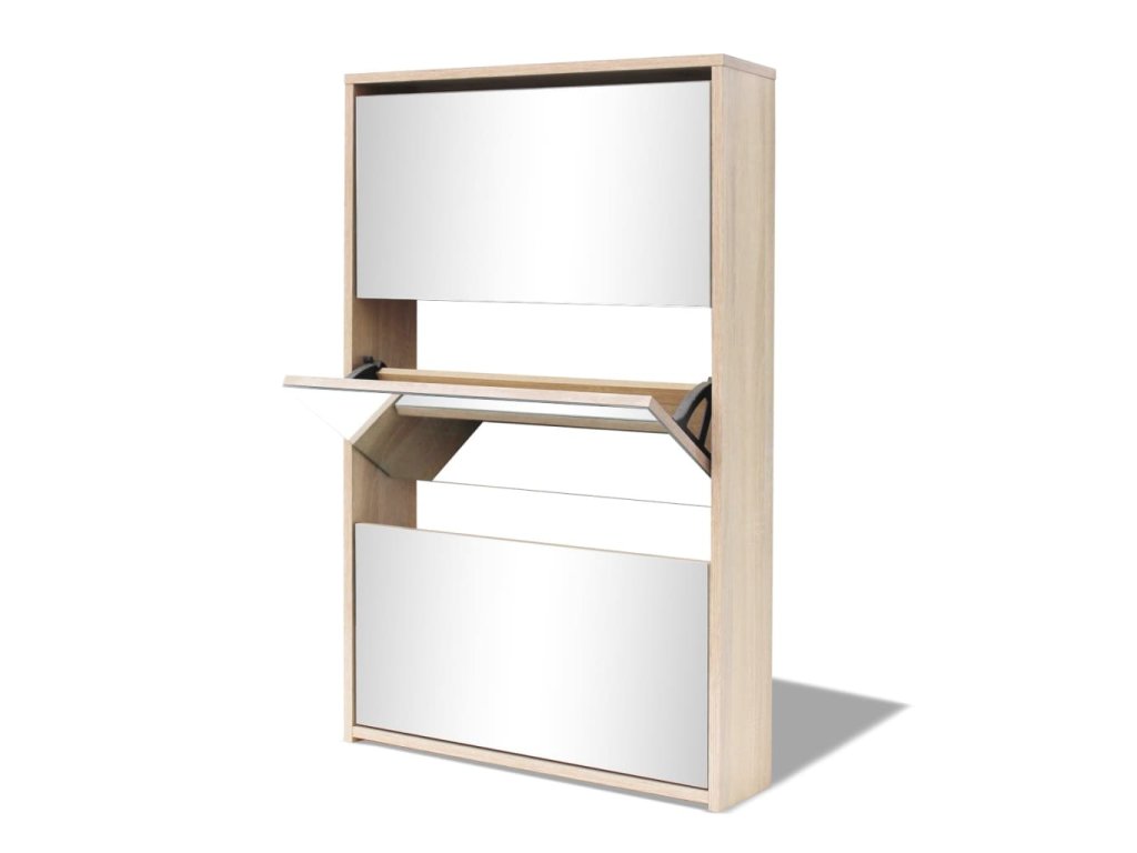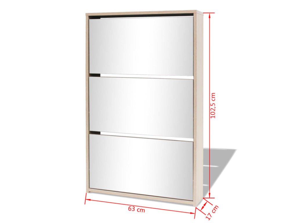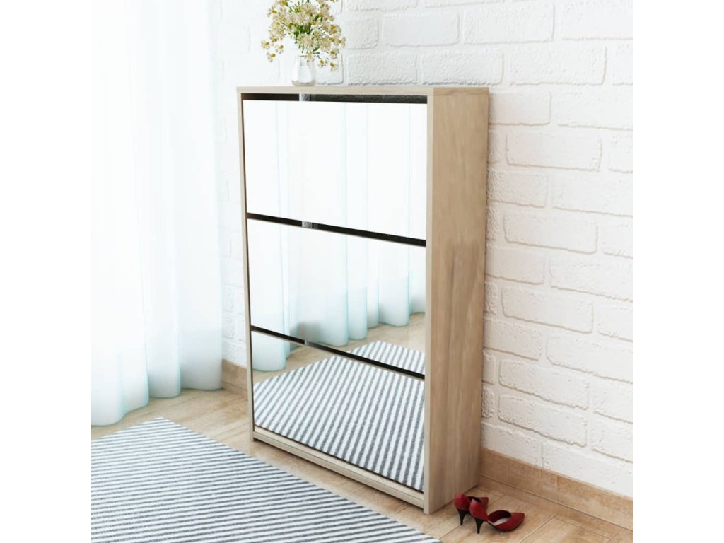 Botník so zrkadlom má má tri poličky. Do každej môžete vložiť 3 až 4 páry topánok. Botník sa dá namontovať priamo na stenu. Táto silná a trvácna skrinka je vyrobená z vysoko kvalitného materiálu. Bude slúžiť ako veľmi praktický kus nábytku pre elegantné a štýlové uskladnenie obuvi.