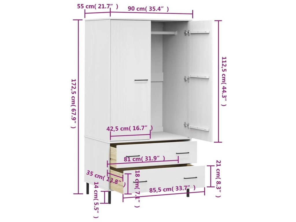 - Rozmery: 90 x 55 x 172,5 cm (Š x H x V)