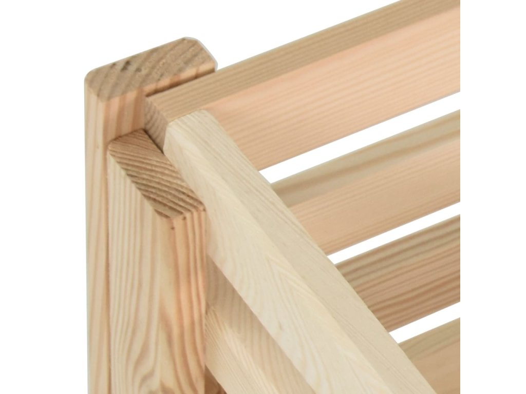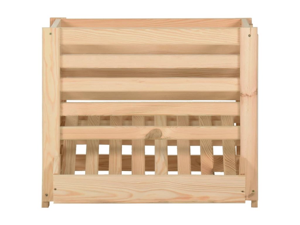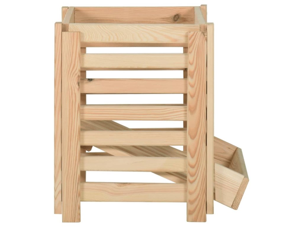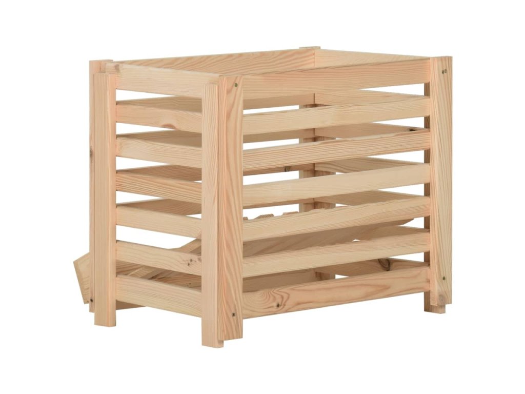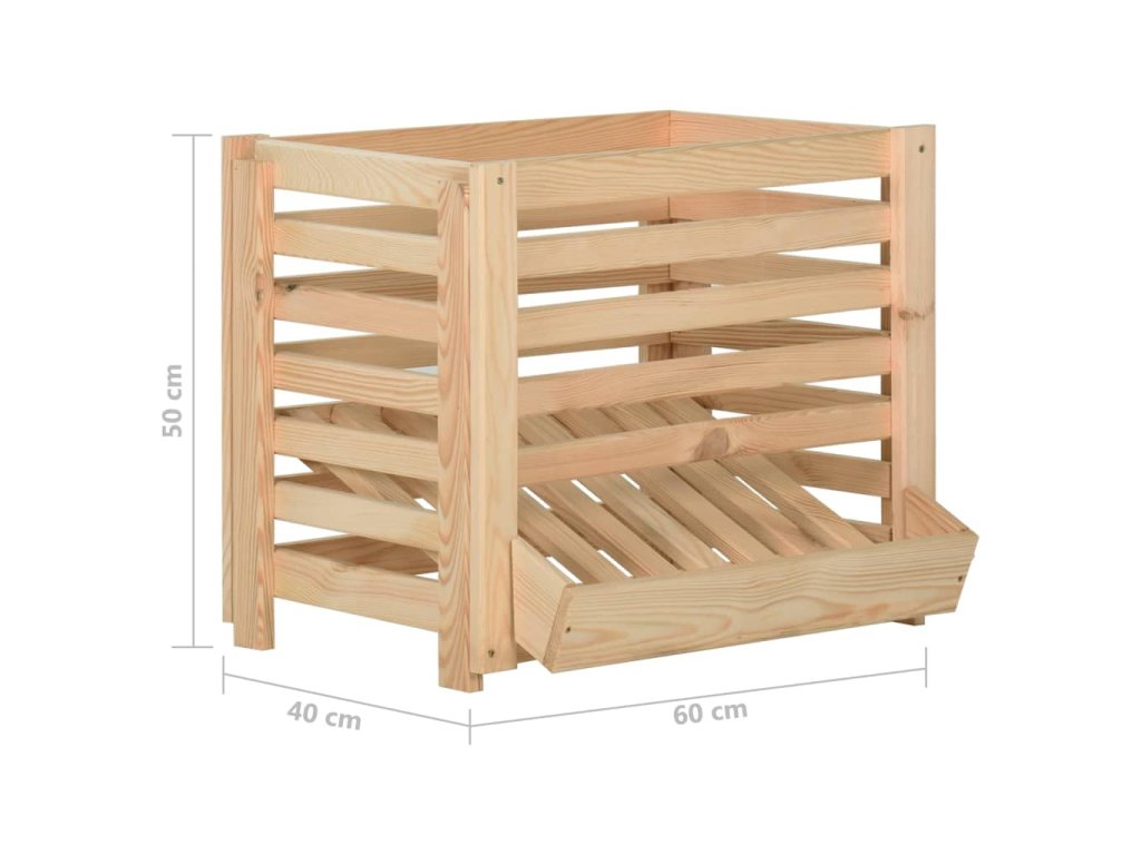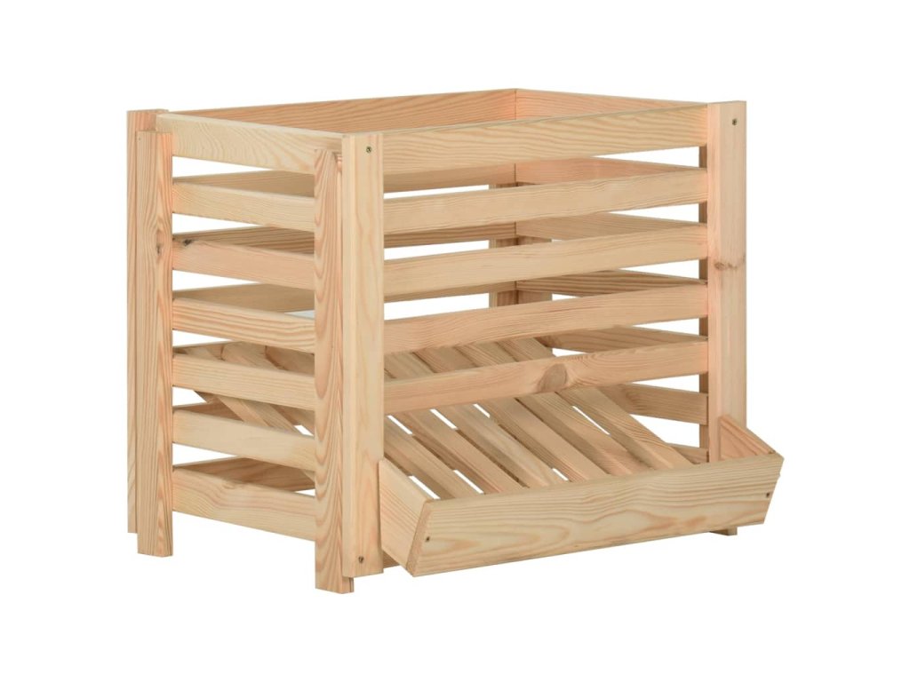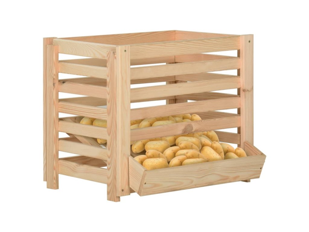 Tento úložný kontajner je vyrobený z masívneho borovicového dreva, takže je stabilný a odolný. Vďaka stohovateľnej konštrukcii môžete zhora ukladať cesnak, zemiaky, cibuľu atď. a vďaka sklápaciemu podnosu pod ňou sa zelenina ľahko vyberá. Medzery medzi lamelami navyše zabezpečujú vetranie pre optimálnu cirkuláciu vzduchu.