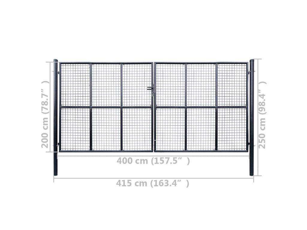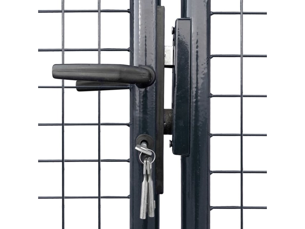 Záhradná brána je kvalitne vyhotovená a vyrobená z pozinkovanej ocele s práškovou povrchovou úpravou, ktorá je odolná voči hrdzi a vytvára pevnú konštrukciu. Má dva bočné stĺpiky s pántmi pre jednoduchú inštaláciu. Je vybavená kolíkom na upevnenie veľkého spodného čapu, aby sa brána dala bezpečne uzamknúť.