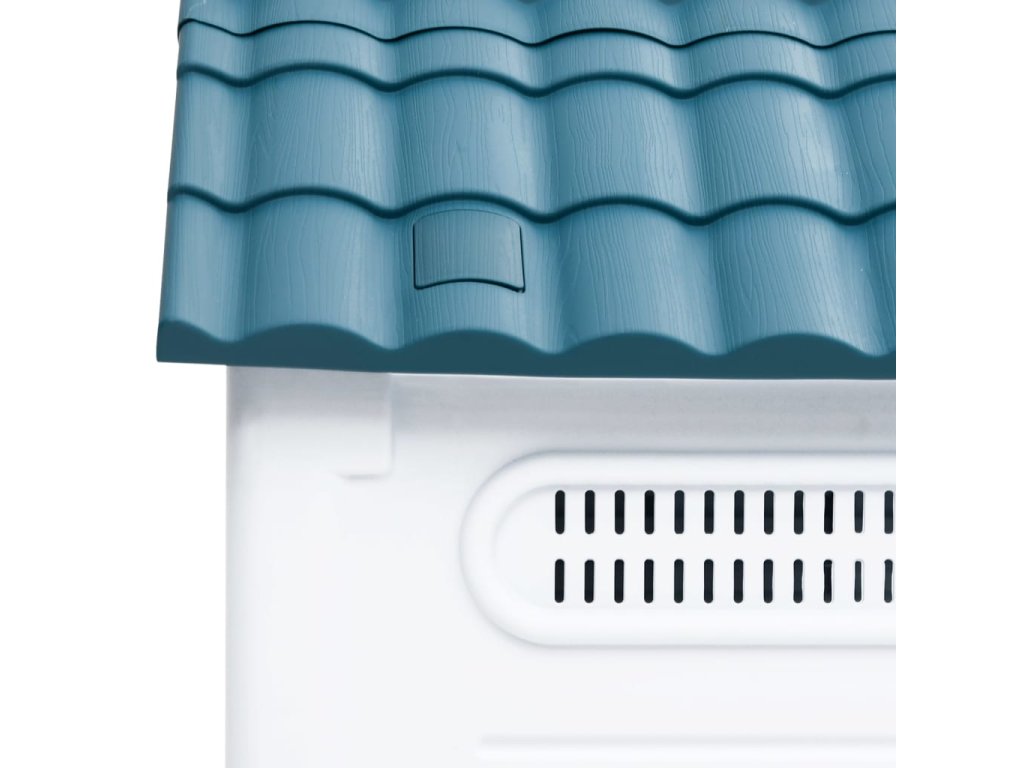 - Zvýšená podlaha: Konštrukcia vyššej podlahy môže zabrániť zatekaniu vody do zásoby pre psov a udržať búdu vždy suchú a pohodlnú pre vašich domácich miláčikov.