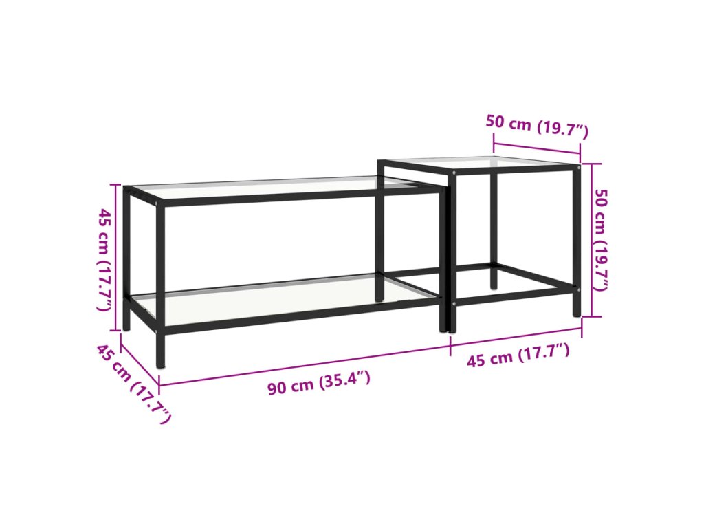 Bočné stolíky sú vyrobené z tvrdeného skla a práškovanej ocele, vďaka čomu sú pevné a odolné. Pevná doska stola poskytuje bezpečný povrch na položenie predmetov. Menší stôl možno uložiť pod väčší, aby sa ušetrilo miesto. Navyše sa ľahko čistia vlhkou handričkou.